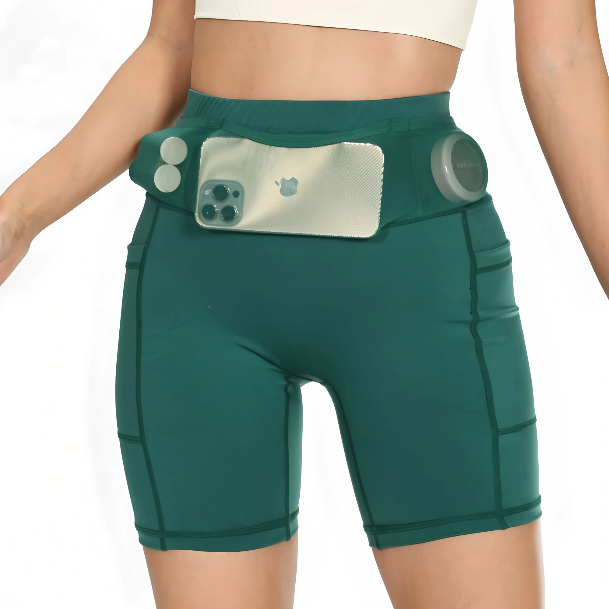 Schnell trocknende Marathon-Laufshorts für Damen mit Hüfttasche, Kompressions-Gym-Radlerhose, Jogging-Yoga-Fitness-Sporthose