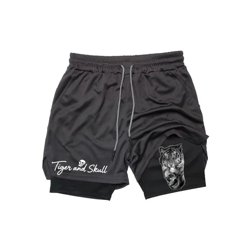 Kompressions-2-in-1-Laufshorts für Herren mit Handytasche, Handtuchschlaufe, schnelltrocknend, Workout, Harajuku, Jogging, Doppelschicht-Shorts