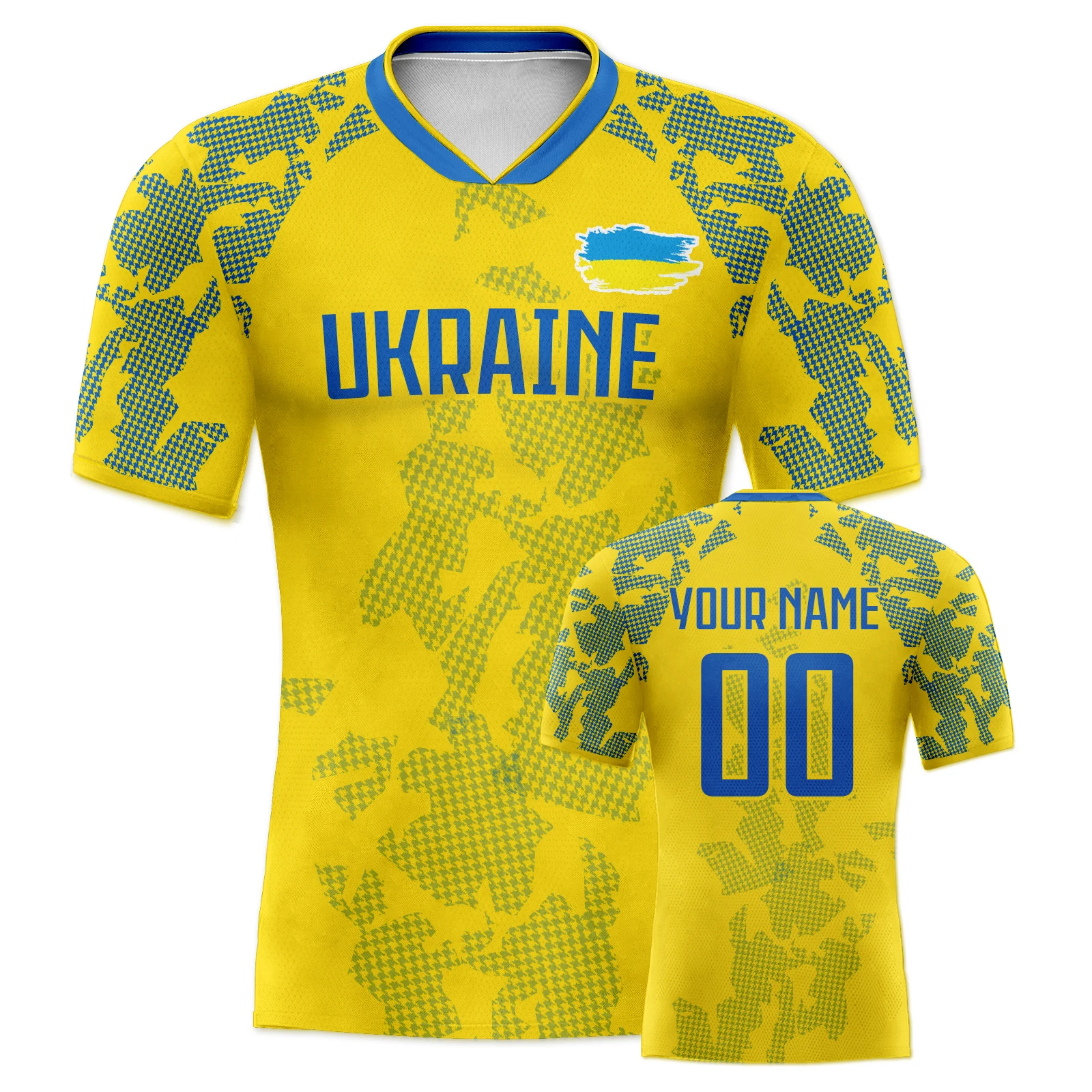 Personalisiertes Ukraine Fußballtrikot mit individuellem Namen und Nummer, Nationalmannschaft Fußballshirt mit V-Ausschnitt und Flaggen-Design für Männer, Jugendliche und Frauen