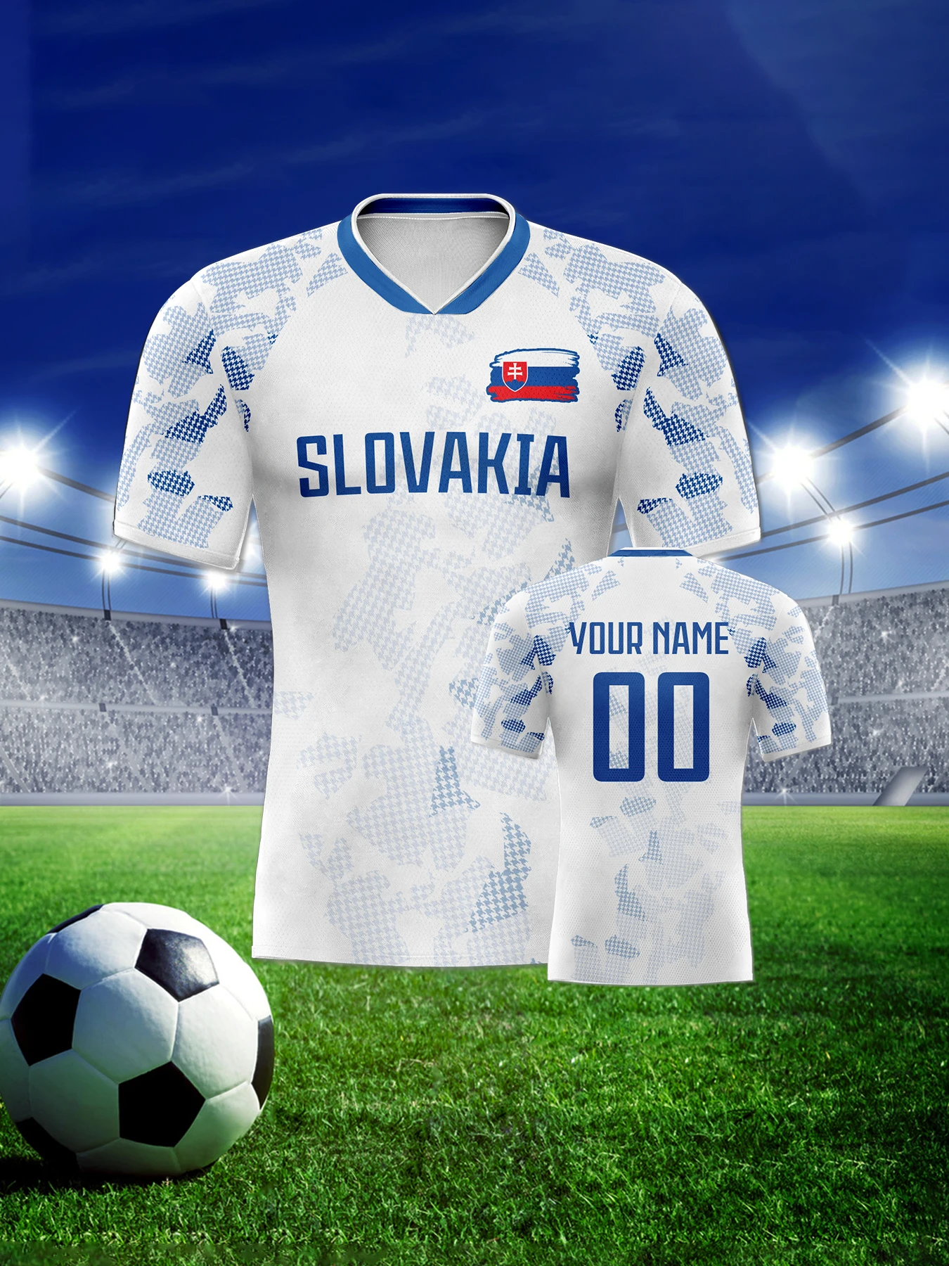 Personalisiertes Slowakei-Fußballtrikot mit individuellem Namen und Nummer, Nationalmannschaft-Trikot mit V-Ausschnitt und Flaggen-Design für Männer, Jugendliche und Frauen