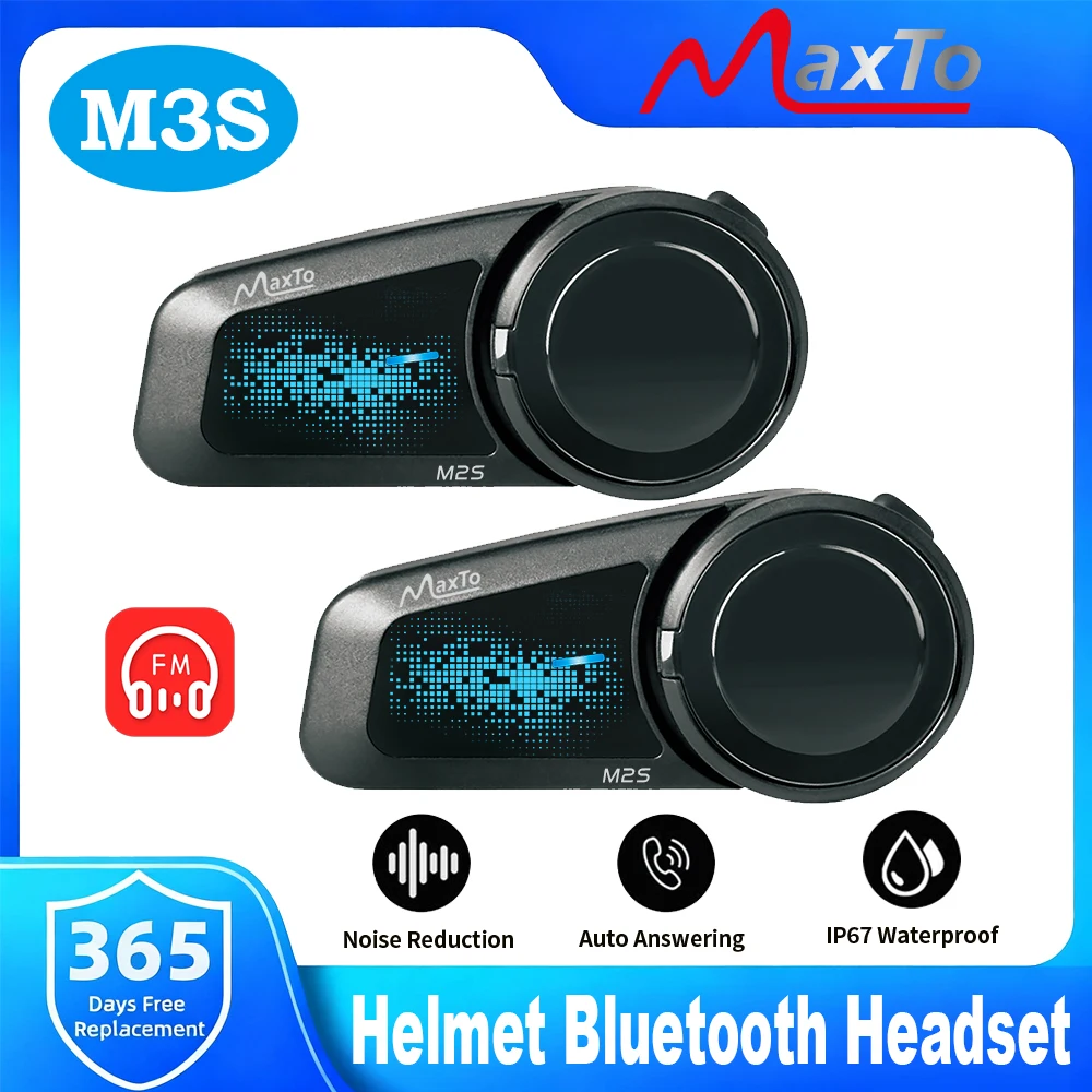 Maxto M2S Motorradhelm-Intercom Bluetooth-Headset Geräuschunterdrückung Musikplayer Automatische Anrufannahme IP67 Wasserdicht FM Sprachansagen
