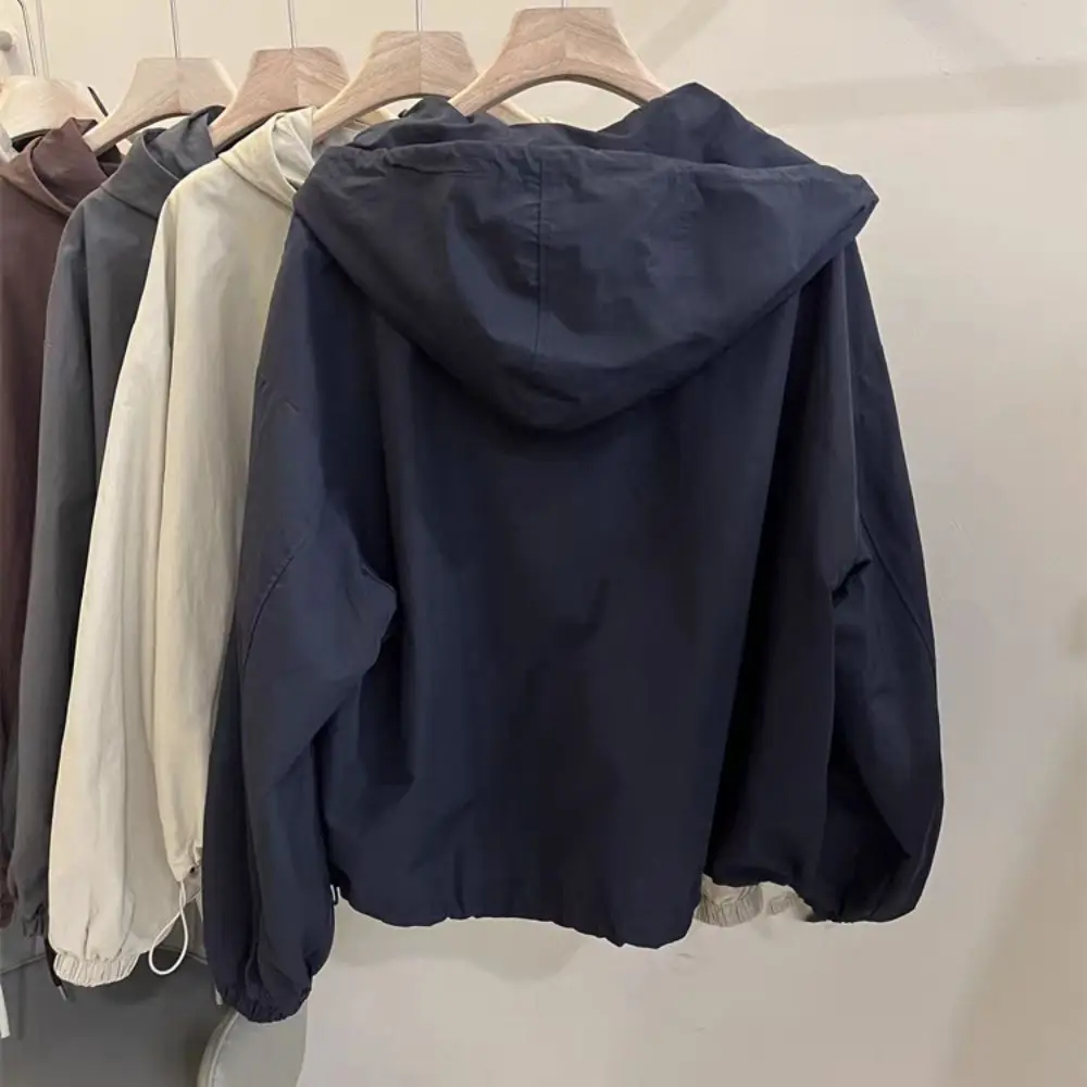 Kordelzug-Sweatshirt mit langen Ärmeln und Kapuze, Sonnenschutz, lockere, dünne Sweatshirts für Damen, koreanische Ins-Kleidung, Kapuzen-Cardigan für Frühling und Herbst