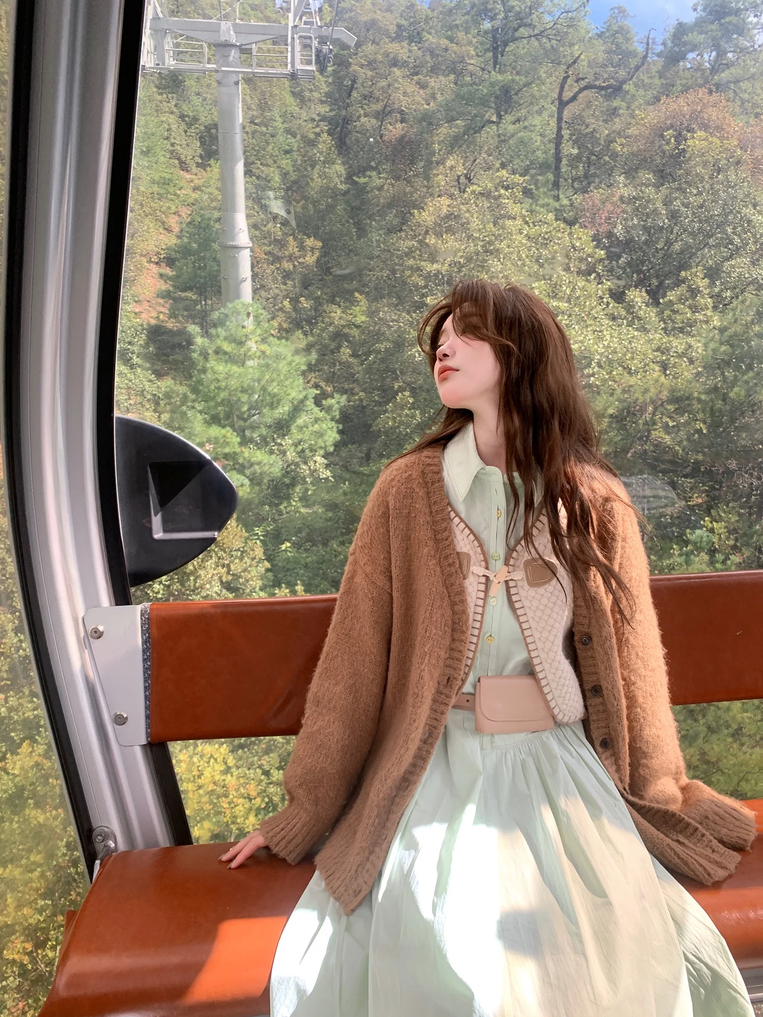 Handgefertigter Wollpullover für Damen, übergroße Strickwaren, Meerjungfrau, braune Farbe, befestigt von Korean Drama Main Fem Charakter