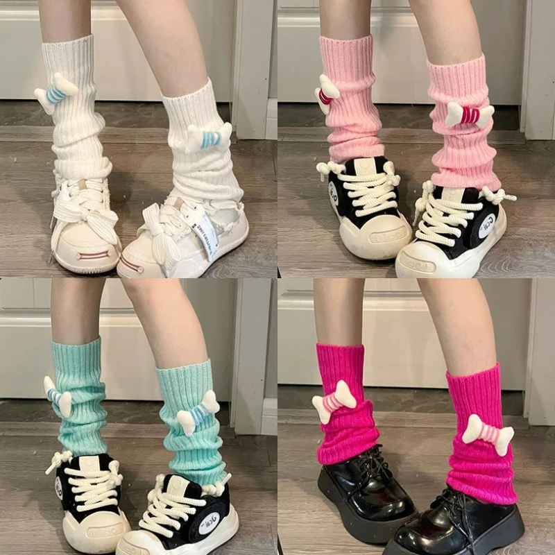 JK Lolita süße Knochen gestrickte Beinwärmer weibliche Kawaii bonbonfarbene gestapelte Socken Y2K Subkultur heiße Mädchen vielseitige Beinbezüge