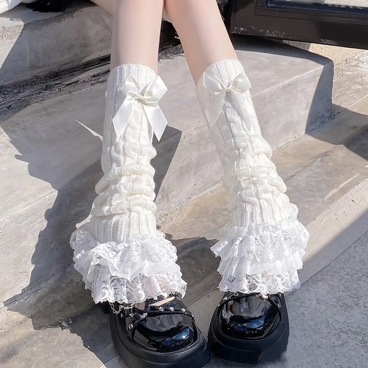 Lolita Bow Lace Plüsch Beinbezüge gestapelte Socken Beinwärmer für Mädchen