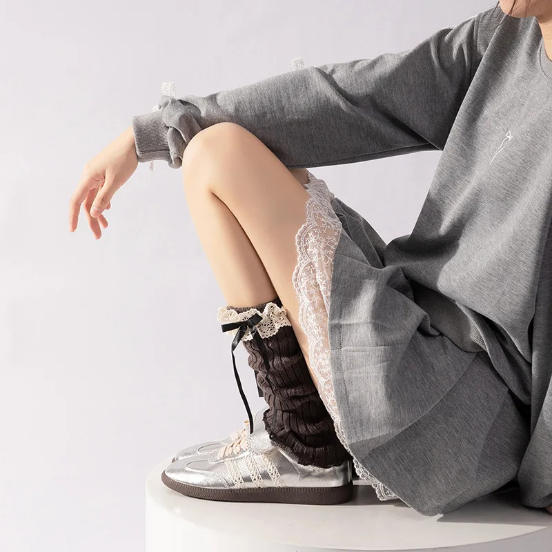 Lolita Beinlinge Socken Weibliche Gestrickte Warme Fuß Abdeckung Weiß Schwarz Wärmer Dame Herbst Winter Häkeln Socke Boot Manschetten 40/50/70 cm