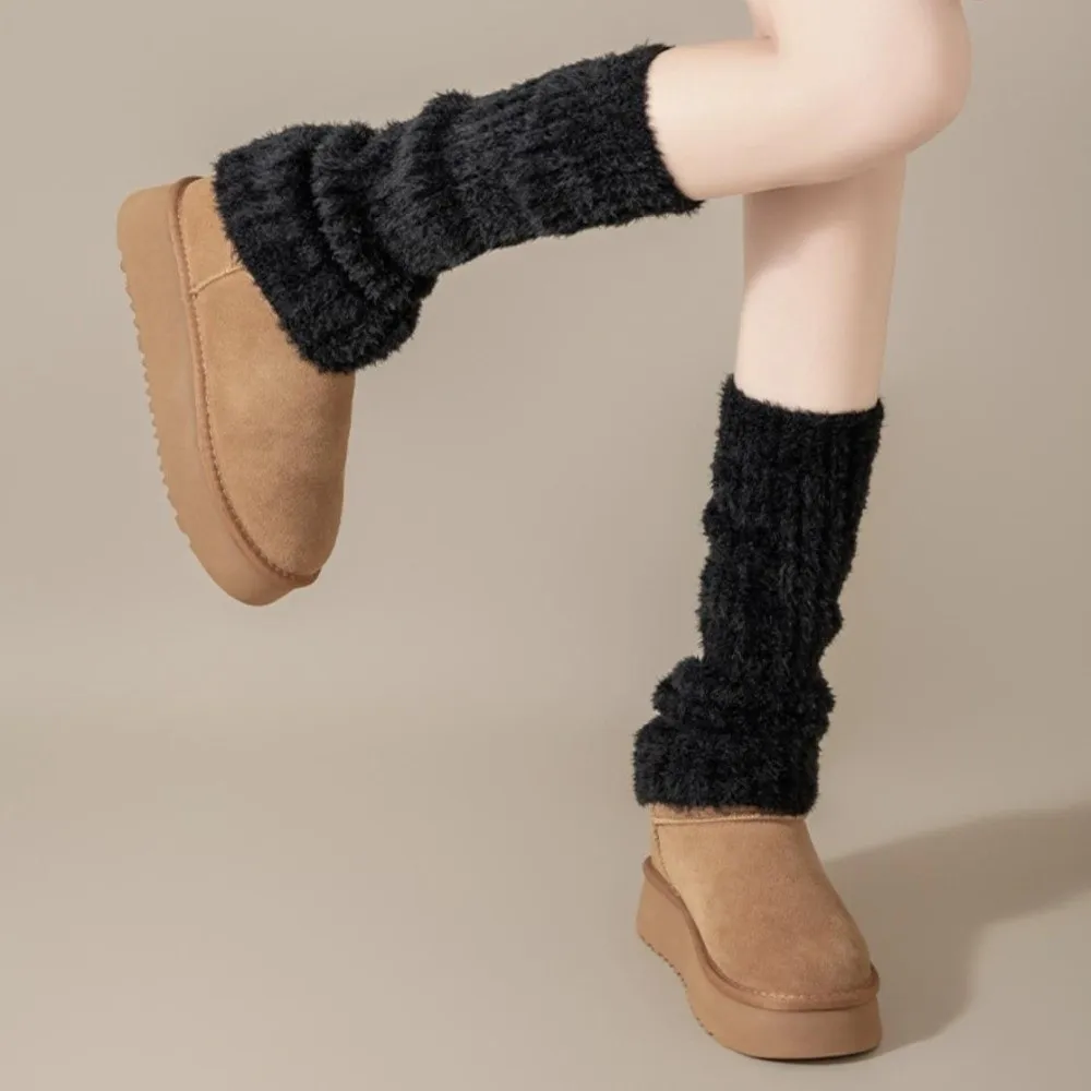 Fußabdeckung im japanischen Stil, pelzige Beinwärmer, 45 cm, Y2K-lange Röhrensocke, süße einfarbige Lolita-Stiefelabdeckung, Herbst/Winter