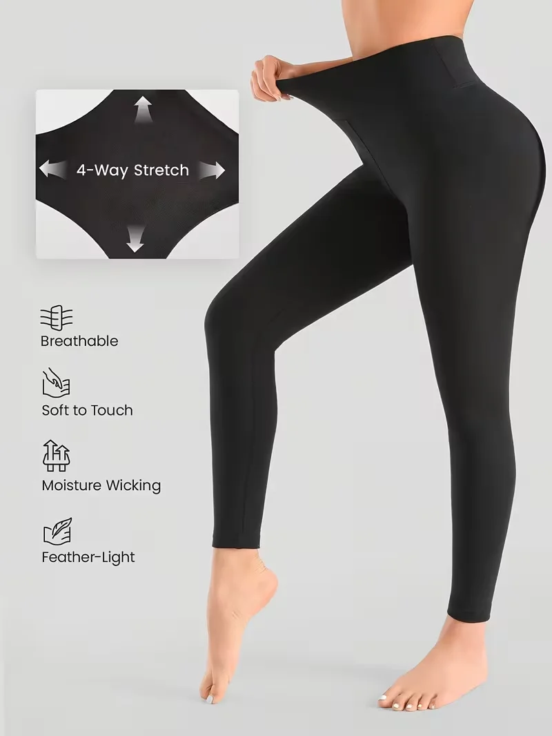 Damen-Leggings in einfarbigem Schwarz, minimalistisch, für alle vier Jahreszeiten geeignet, elegant und vielseitig, ultraweiche, elastische Leggings.