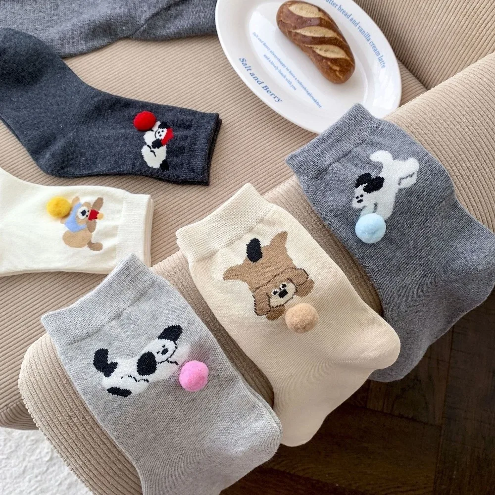 Damen-Wintersocken mit niedlichem Cartoon-Hund-Design, warm, verdickt, mittellange Baumwollsocken, atmungsaktiv, lustige Socken für Damen
