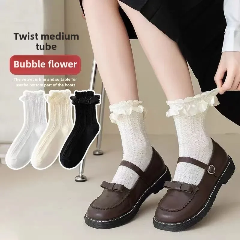 5 paare/los Socken für Frauen Rüschen Baumwolle Mittelrohr Knöchel Kurze Atmungsaktive Schwarz Weiß set Frühling Herbst 2030
