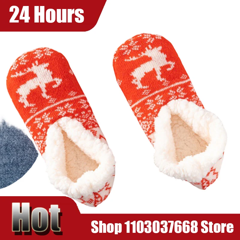 Weihnachten Baumwolle Indoor Hause Fleece Verdickung Warme Strumpf Innen Nicht-slip Schuh Abdeckung Winter Strumpf Warme Haus Strumpf