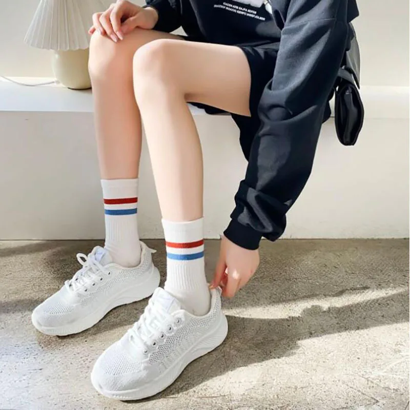 Frauen Socken Baumwolle Frühling Winter Liebe Druck Mid-Tube Socken Harajuku Streetwear Harajuku niedlichen koreanischen kurzen gestreiften Socken Mädchen Geschenk