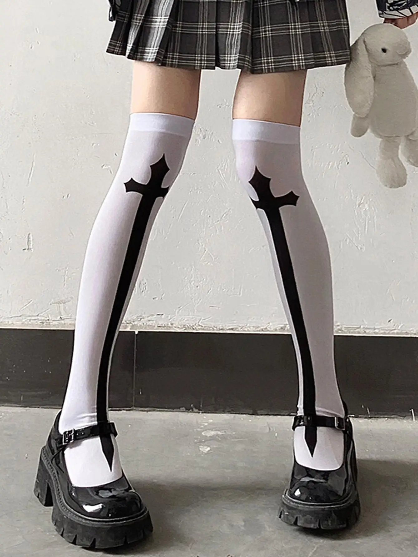 Lolita Mädchen Schleife Hohl Lange Socken Süße Japanische Fischnetz Gezeiten Spitze Kniehohe Strümpfe Seide mit Schleife Kreuz Krawatten JK Dünne Socken