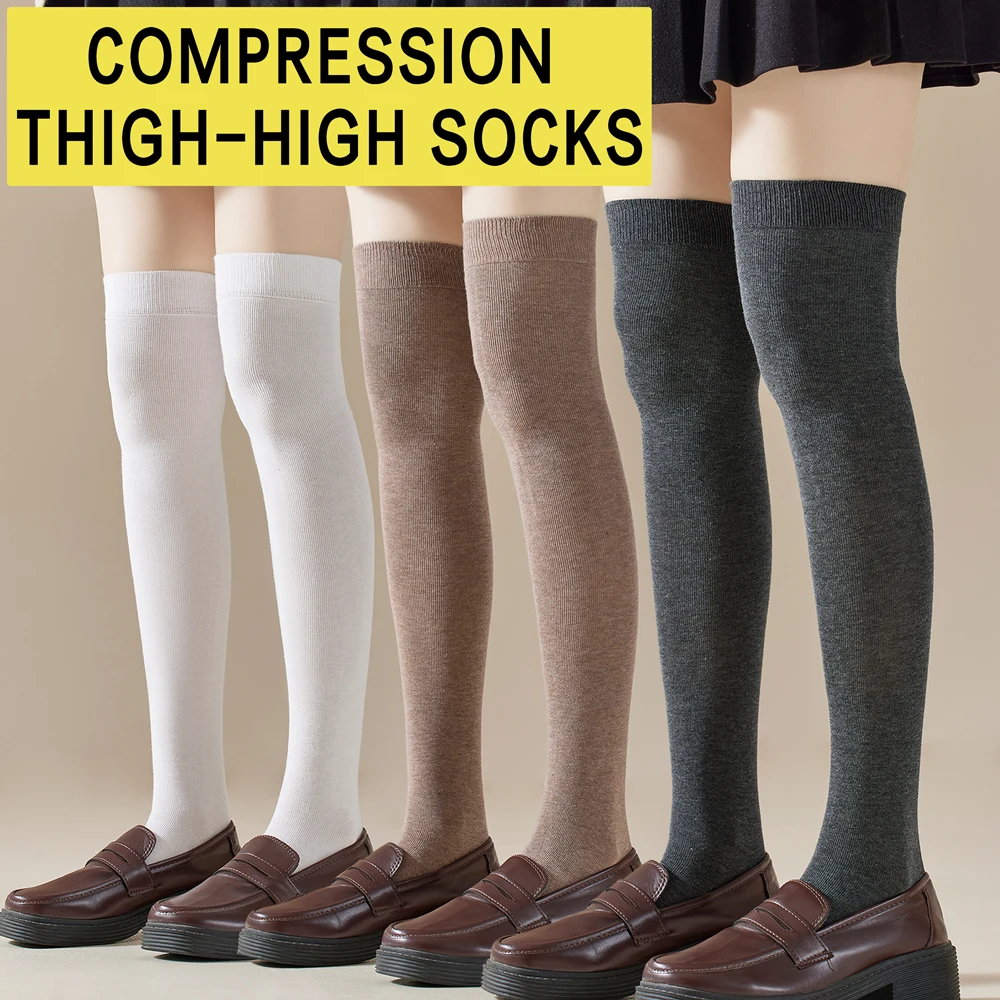 1 Paar Mikro-Druck-Kniestrümpfe zum Abnehmen für Damen, atmungsaktive Baumwolle, nahtloses Design, trendige JK-ästhetische Oberschenkelstrümpfe