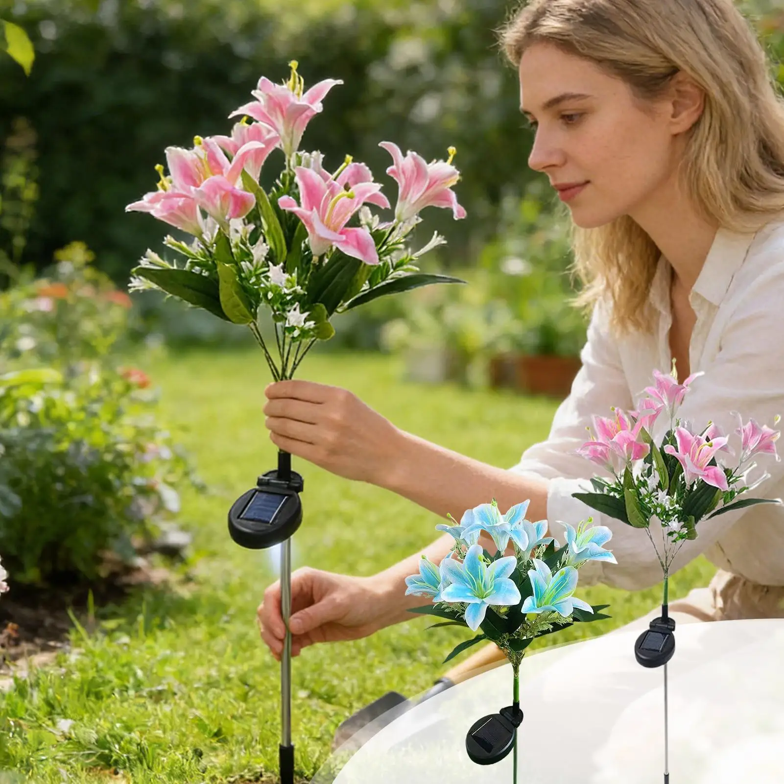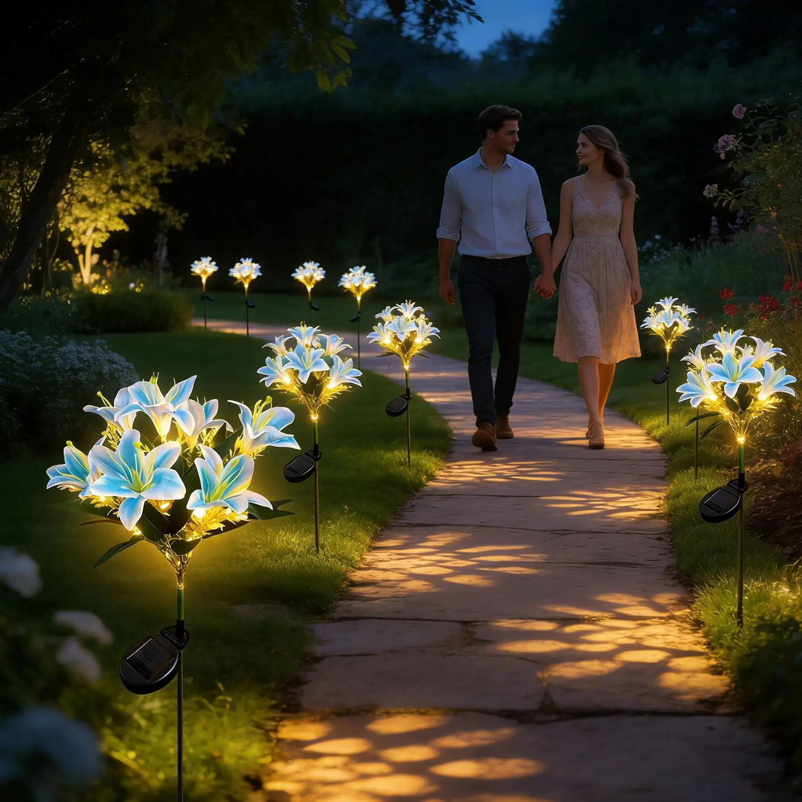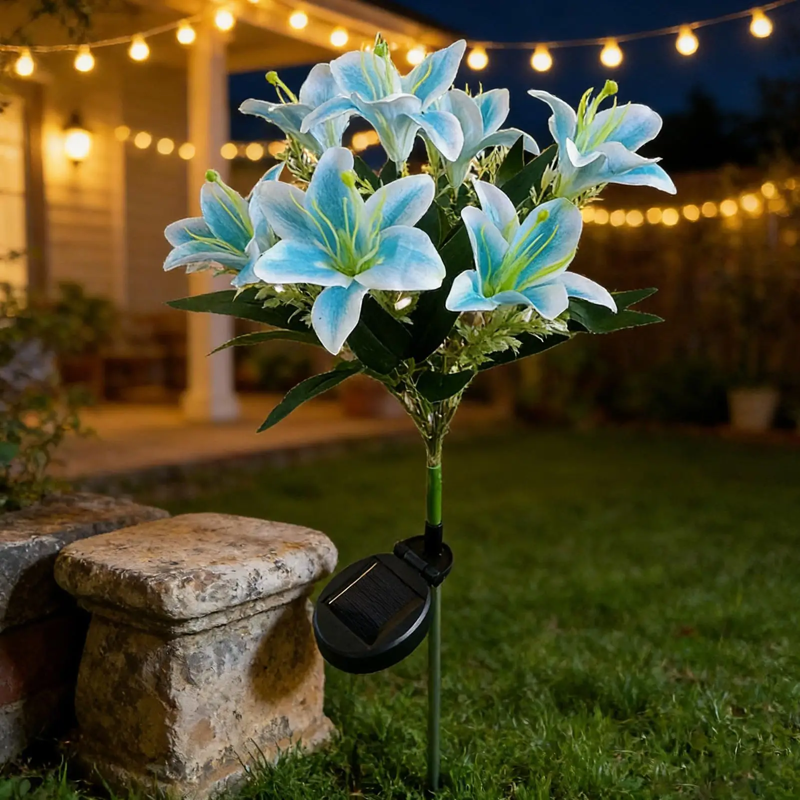 Solarbetriebene Blumen-Lichterkette für den Außenbereich, wasserdicht, 7 Köpfe, künstliche Lilienbeleuchtung mit Erdspieß, wasserdichte Solarleuchten für Garten und Terrasse