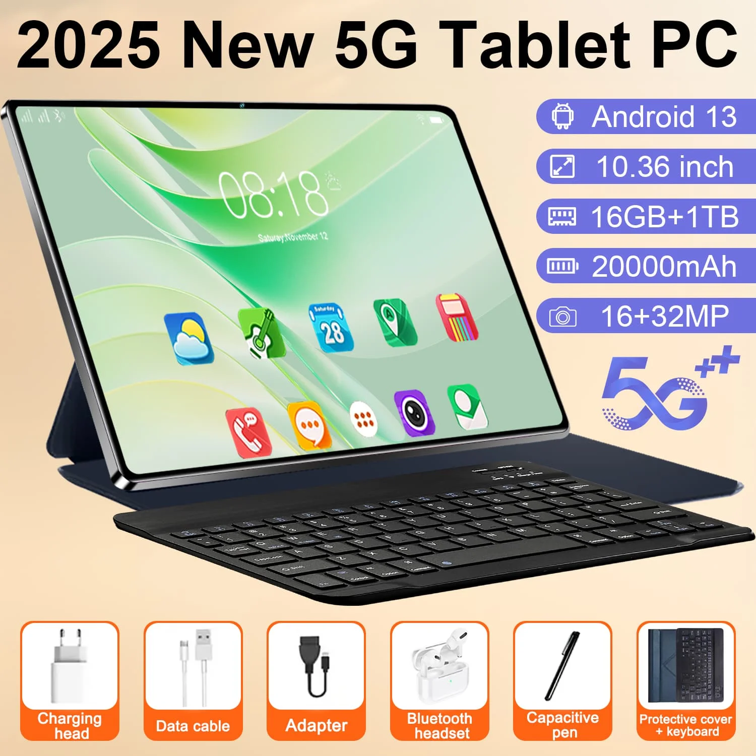 Globale Version Neues 5G 10,36 Zoll Tablet Android 16GB Ram 1TB Rom 20000mAh Android 13.0 WIFI Netzwerk 14 Core WPS Office 4K HD Bildschirm Tablet PC Typ-C mit Tastatur Bluetooth