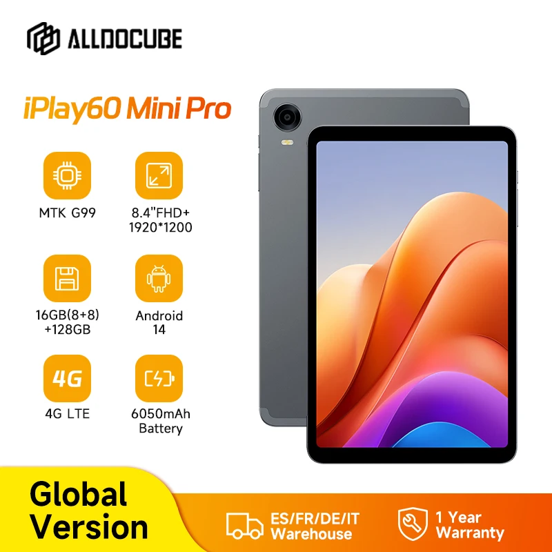 ALLDOCUBE iPlay60 Mini Pro 8,4 Zoll Mini Tablet Helio G99 Android 14 16 GB (8 GB + 8 GB virtuell) RAM 128/256 GB ROM 4G LTE 6050 mAh