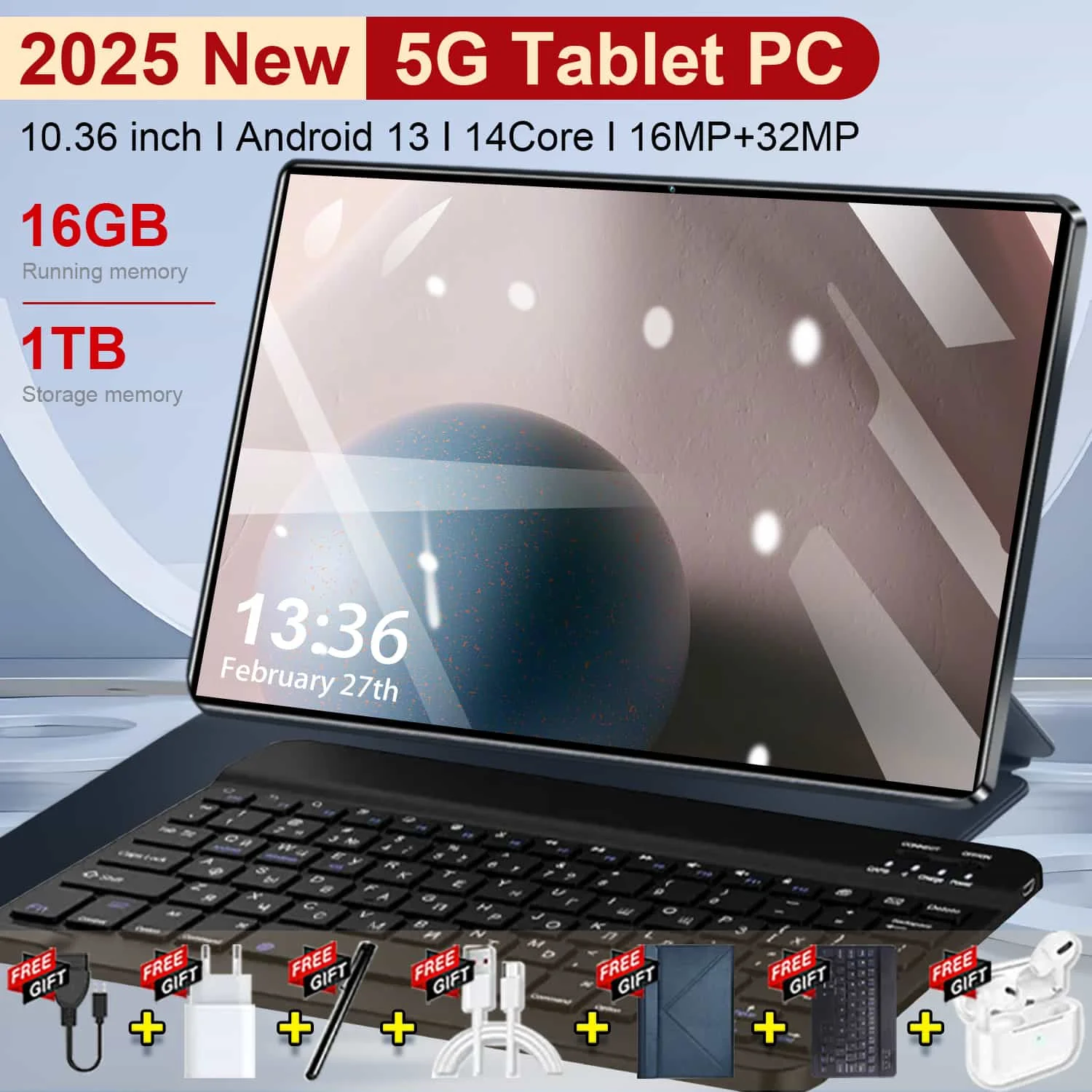2025 NEUES Tablet 10,36 Zoll 14core Android 13 20000 mAh 16 GB + 1 TB Tablet PC GPS Android 13 5G Dual SIM Tablet PC