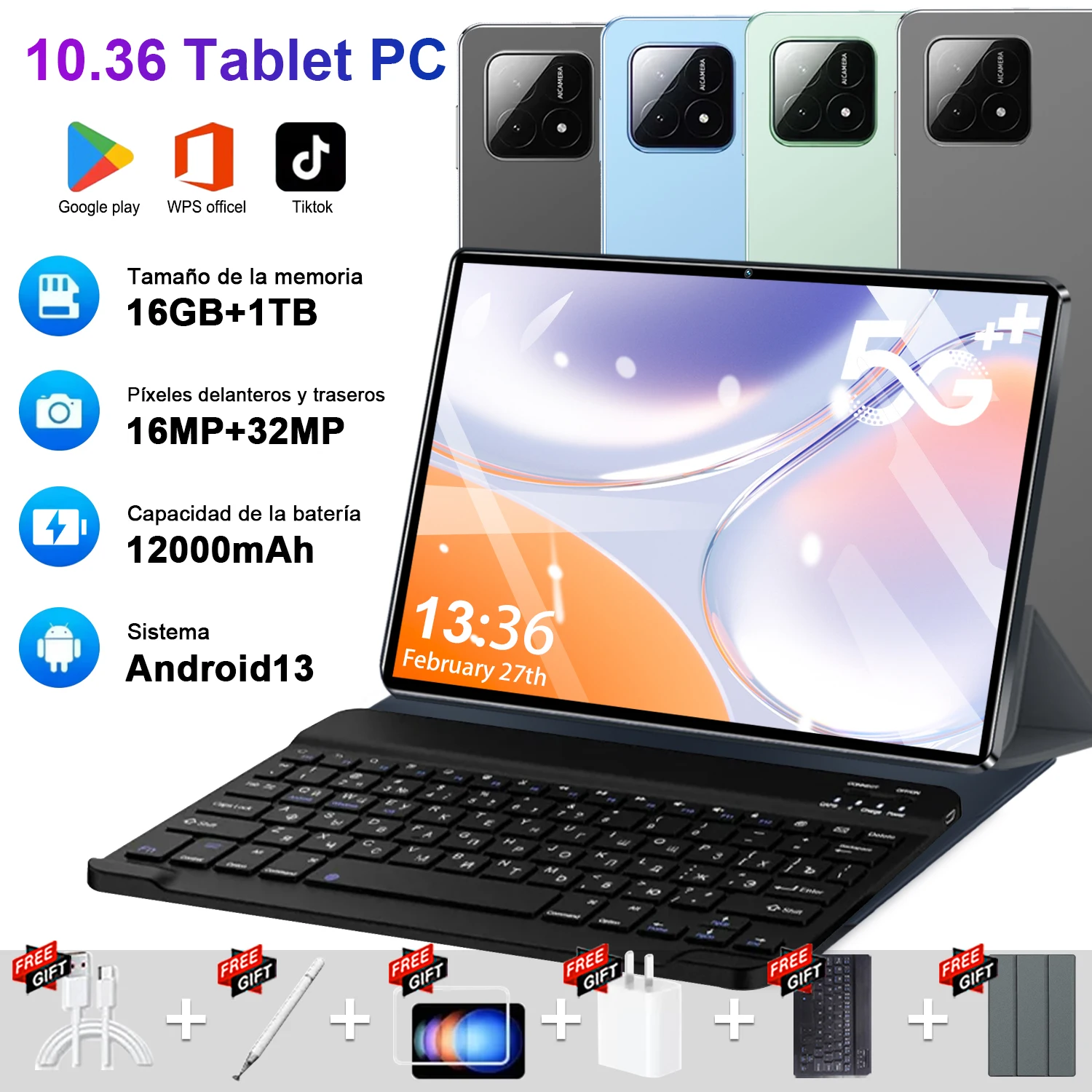 2025 Android 5G 10,36 Zoll Tablet 10-Core-Prozessor 16 GB RAM 1 TB Speicher 12000 mAh WiFi Bluetooth Pad