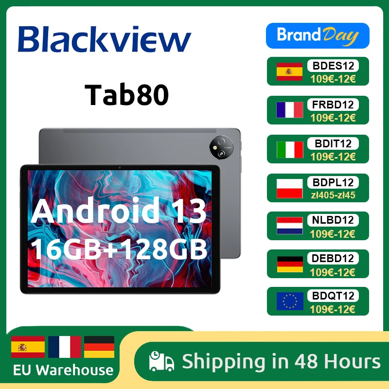 Blackview Tab 80 Android 13 Tablet 8 GB + 128 GB 10,1-Zoll-HD-Display T606 Octa Core 7680 mAh 2,4 G/5 G WiFi 13 MP Rückkamera 4G-Tablet