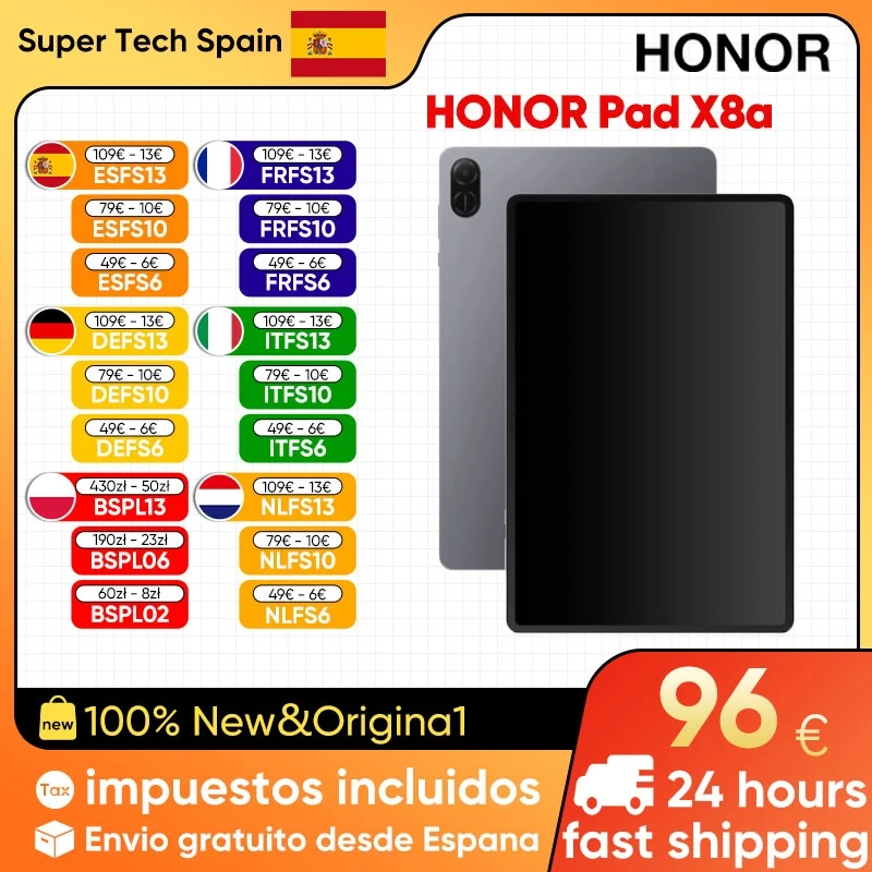 HONOR Pad X8a Global Version Tablet 4 GB 64 GB 11 Zoll 90 Hz Display 8300 mAh Akku Snapdragon 680 Android 14 WiFi HONOR Pad