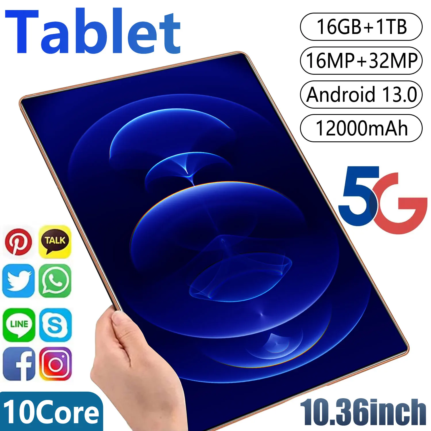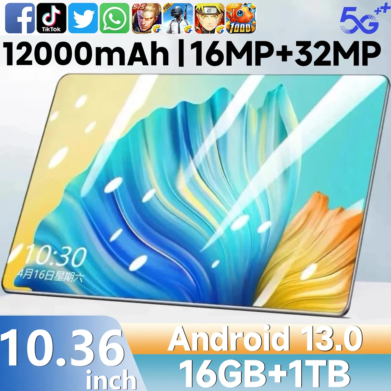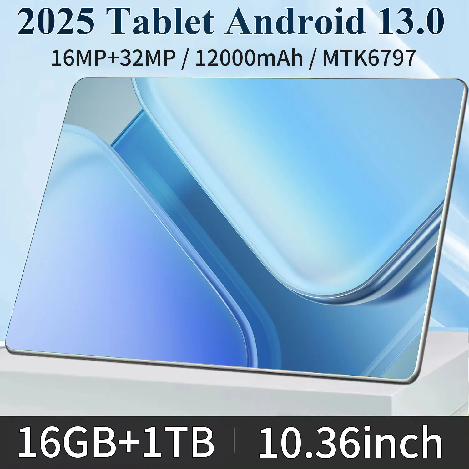 2025 Neues Tablet Android 13.0 10,36 Zoll 16 GB RAM 1 TB ROM Tablet 16 MP 32 MP 12000 mAh 10Core WIFI Bluetooth Netzwerk Tablet