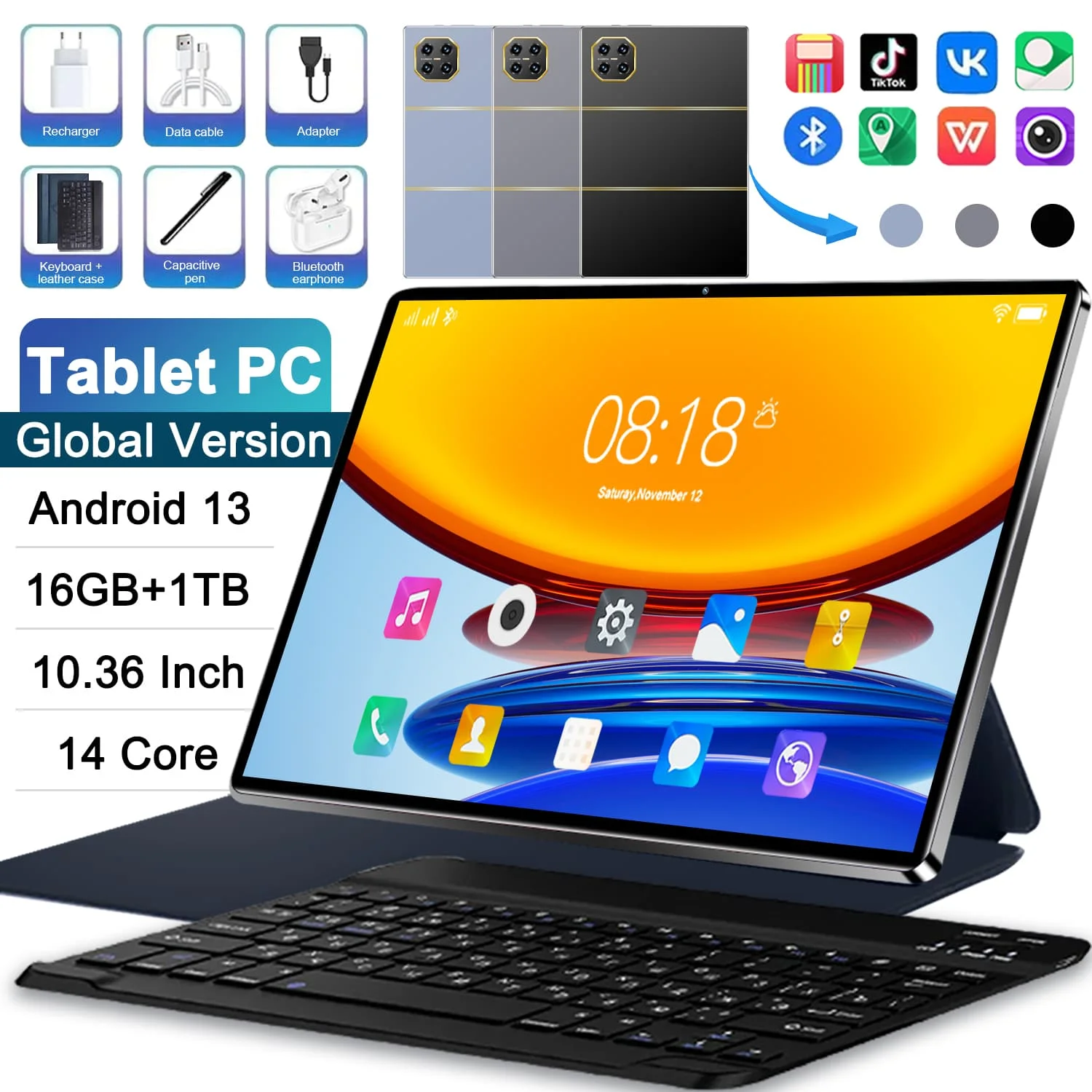 2025 Global Neuestes neues 10,36-Zoll-Tablet Android 13 Pad 16 GB 1 TB 4K HD 5G Google 14 Core WIFI Bluetooth WPS 20000 mAh Tablets