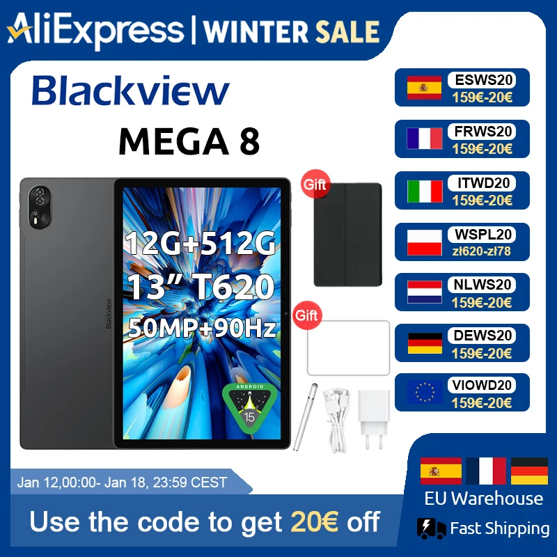 【Weltpremiere】Blackview MEGA 8 Tablet 13 Zoll FHD+ 90 Hz Display 11000 mAh AI Android 15 50 MP Kamera 4 BOX Lautsprecher 4G Pad PC