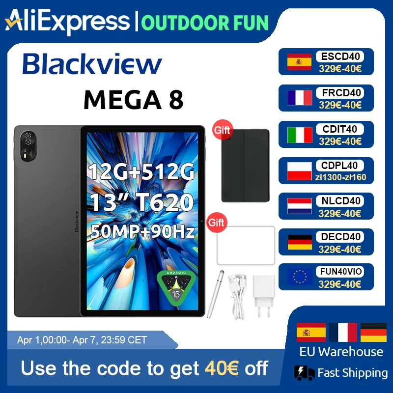 【Weltpremiere】Blackview MEGA 8 Tablet 13 Zoll FHD+ 90 Hz Display 11000 mAh AI Android 15 50 MP Kamera 4 BOX Lautsprecher 4G Pad PC