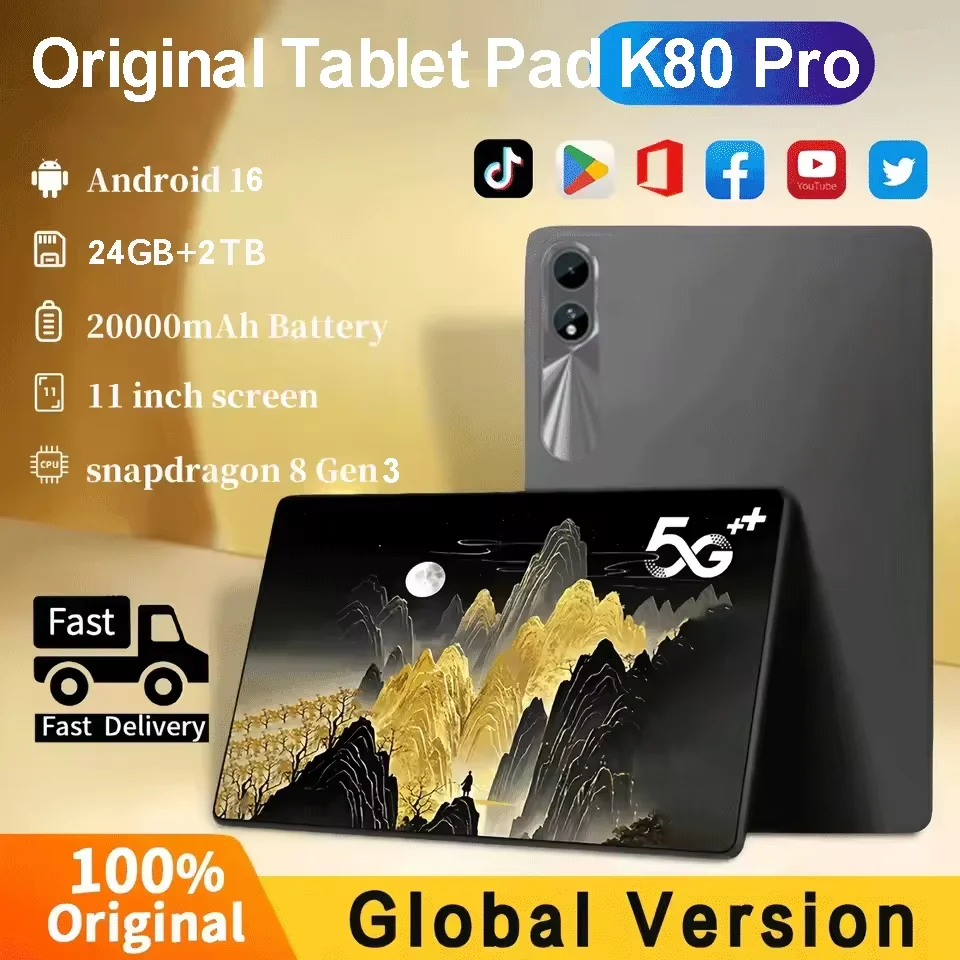 2025 Original Global Version Pad K80 Pro Face Unlock Tablet PC 24 GB + 2 TB 11 Zoll HD 4K Bildschirm Android16 Snapdragon8Gen3 5G Netzwerk WiFi GPS 12000 mAh Tablet PC