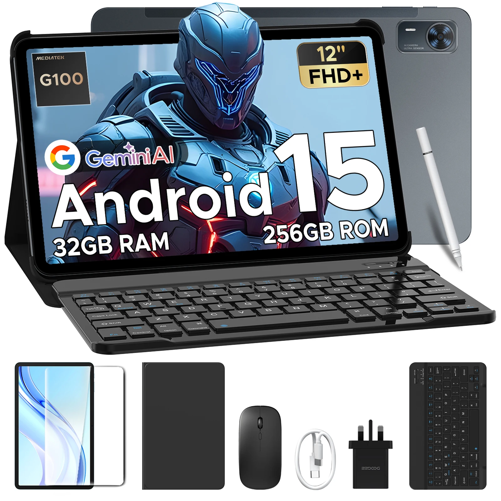 Doogee Tab E3+ 2-in-1-Tablet-PC Gemini Ai 12"" 2K-Display Android 15 32 GB RAM (8+24) 256 GB ROM 8800 mAh Akku Helio G100 Tablet PC