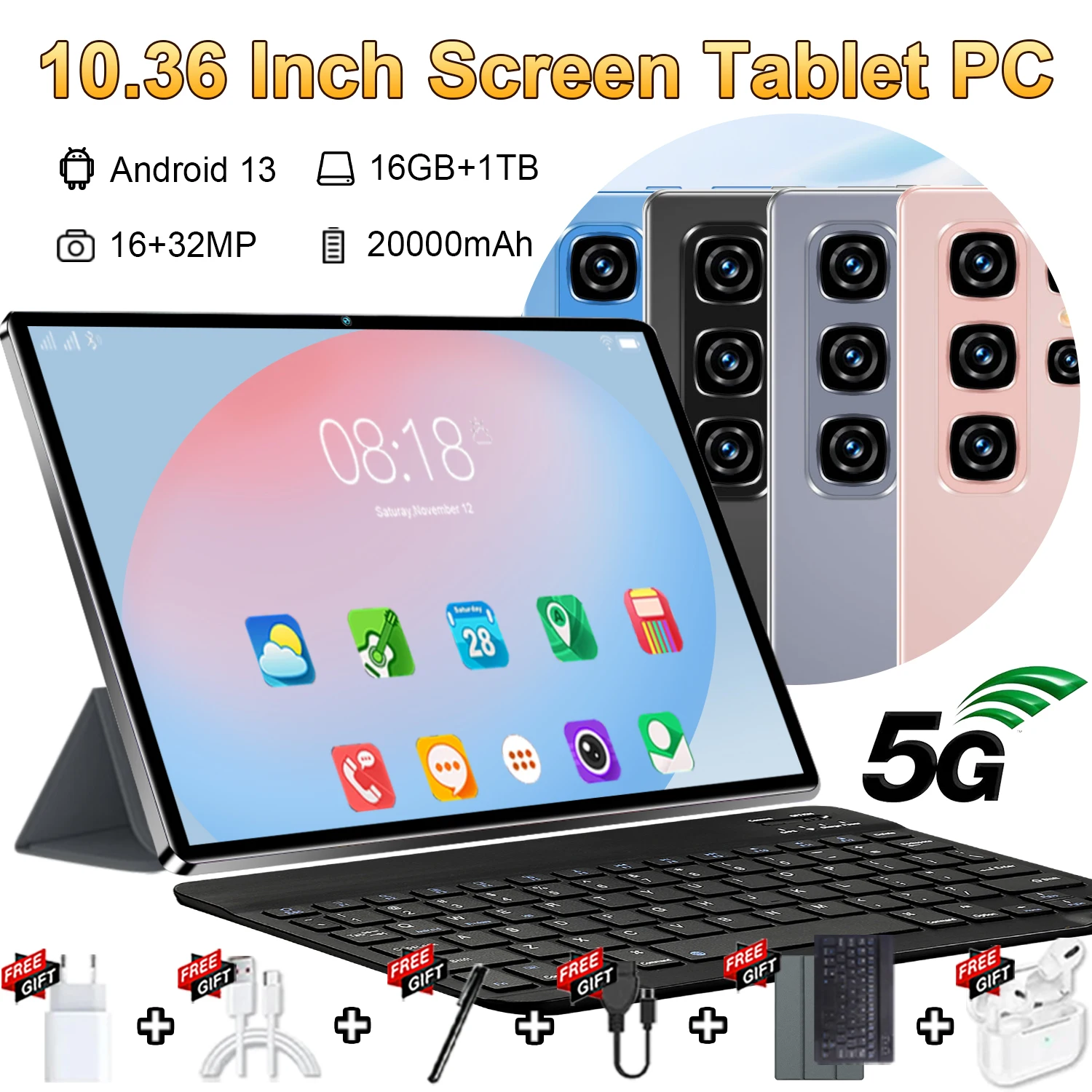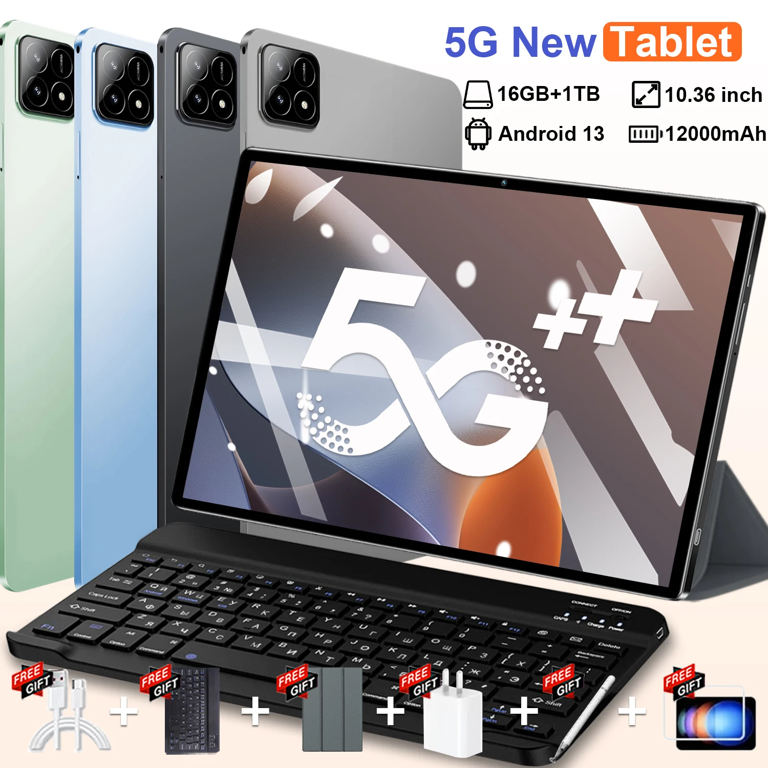2025 5G Neues Global Version Tablet 10,36 Zoll Android 13.0 16 GB RAM 1 TB ROM Bluetooth WiFi Netzwerk 20000 mAh Lerntablett.