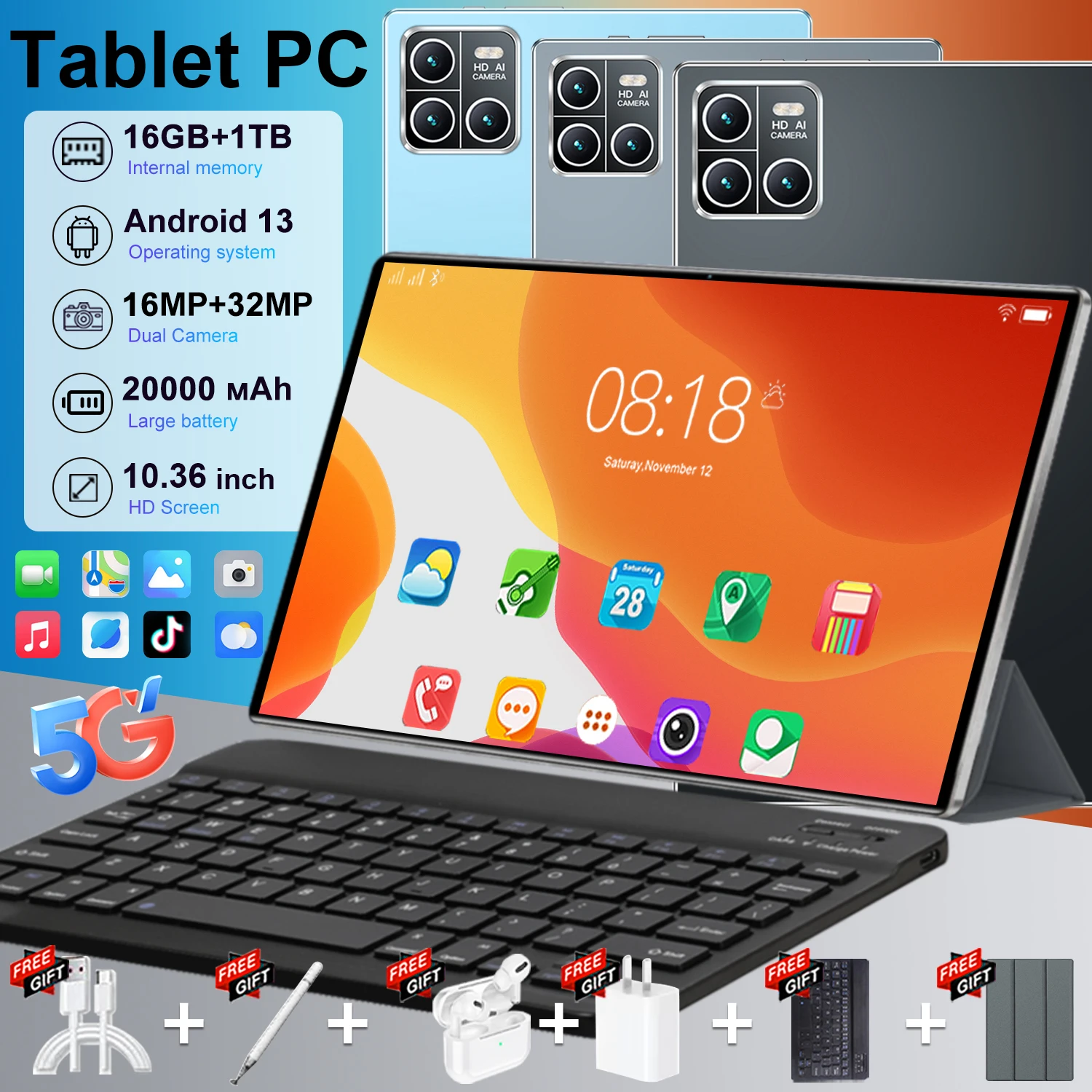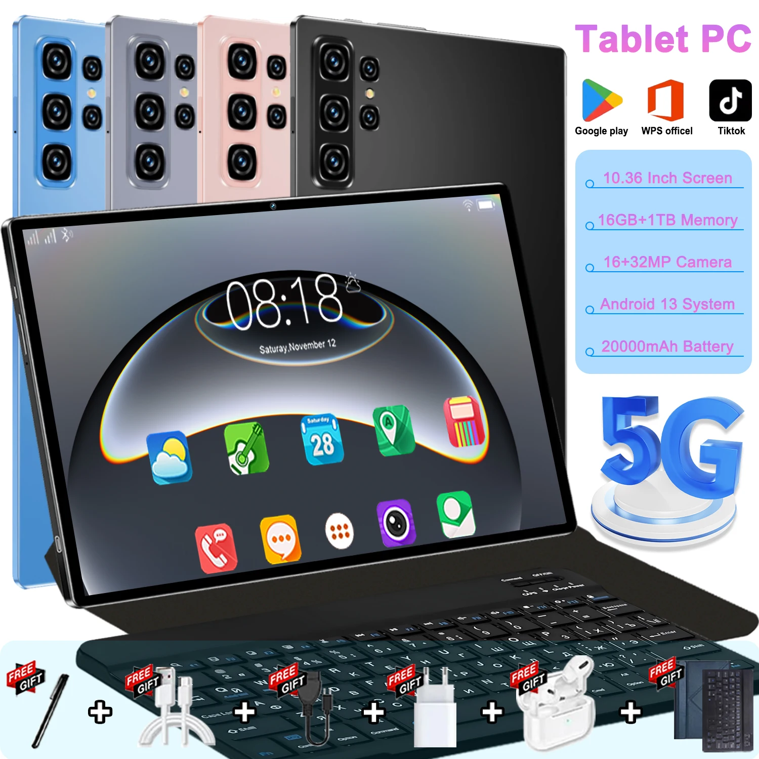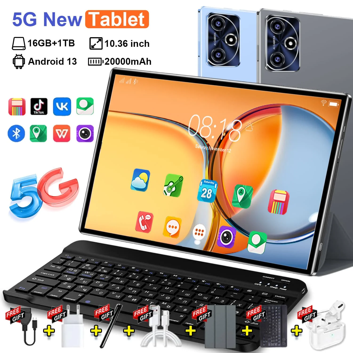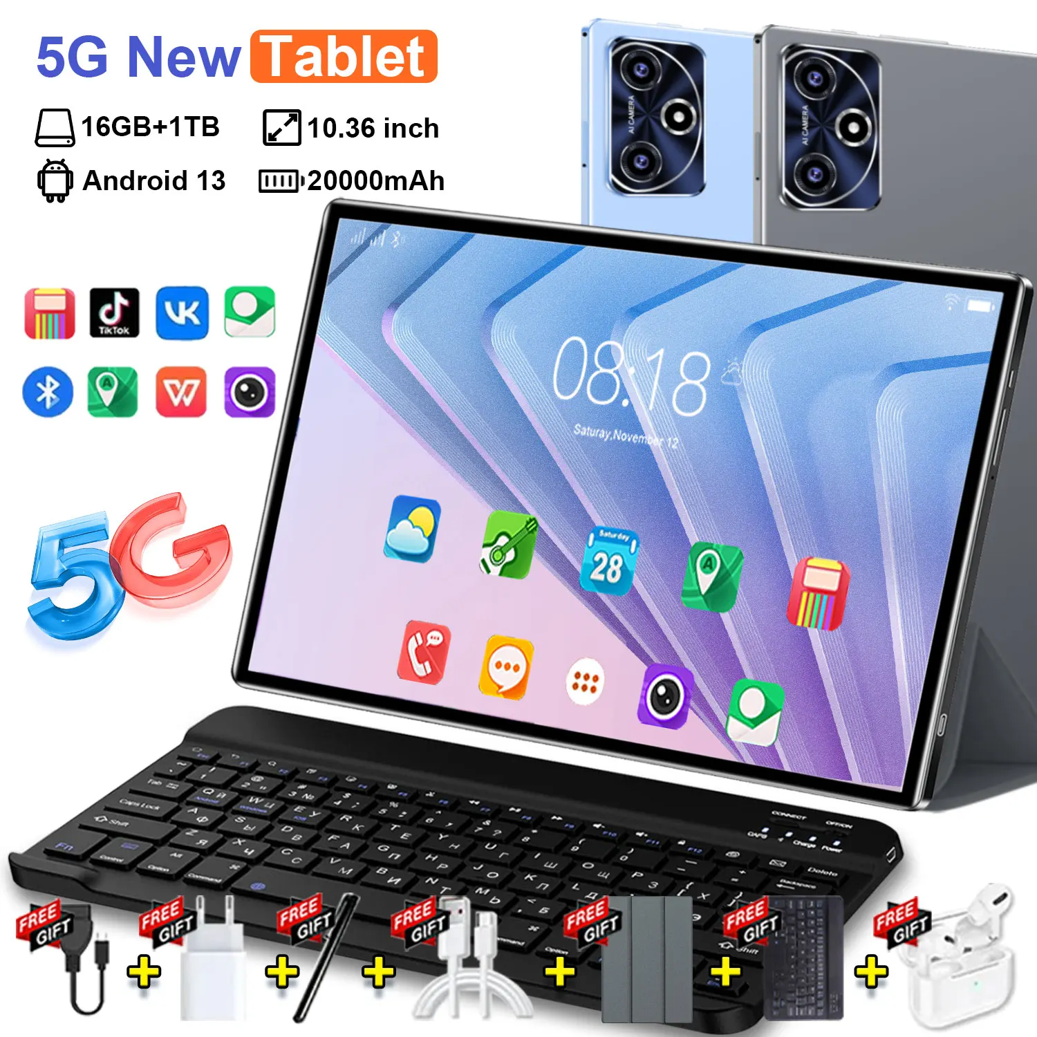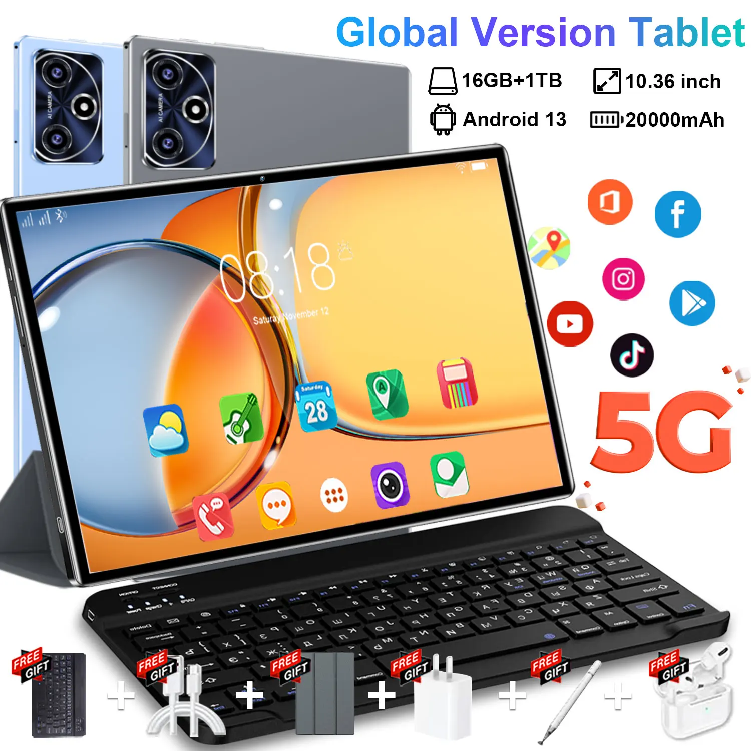 2025 Globale Version Android 13 5G Tablet 16 GB + 1 TB 10,36 Zoll 14 Core 20000 mAh Akku WIFI GPS Büro Bluetooth Tabl