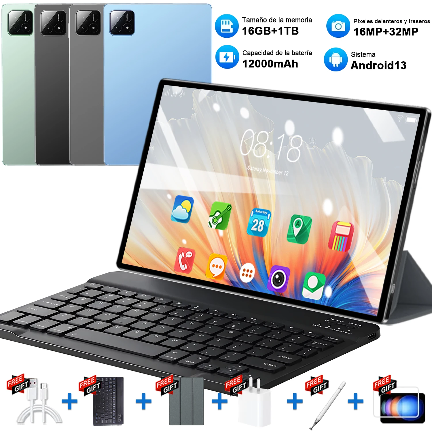 Neues Global 2025 Tablet 10,36 Zoll HD 16 GB + 1 TB 10 Core 5G WIFI Dual SIm GPS 12000 mAh 16 MP + 32 MP Büro Original Tablet