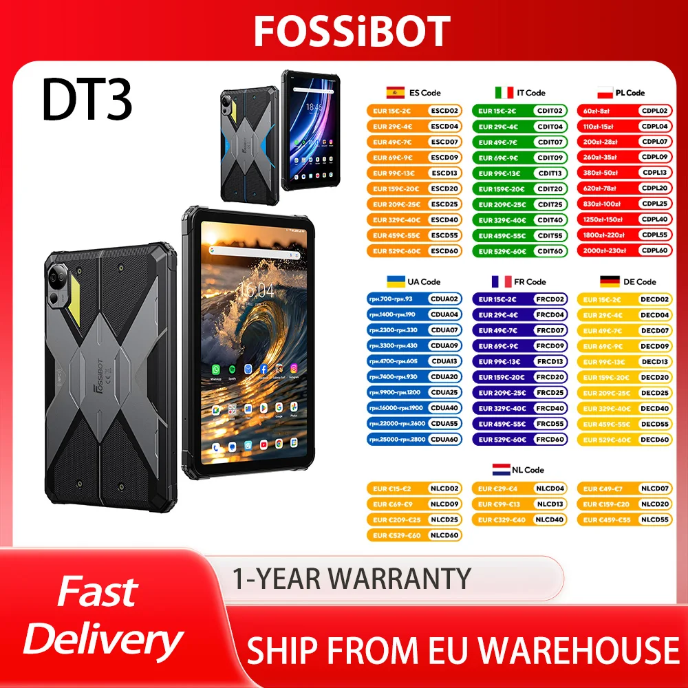FOSSiBOT DT3 5G Robustes Tablet, Android 15, 10,4 Zoll 1200x2000 Display, 12GB RAM 256GB ROM, WiFi 6, 21560mAh Akku 66W Schnellladung