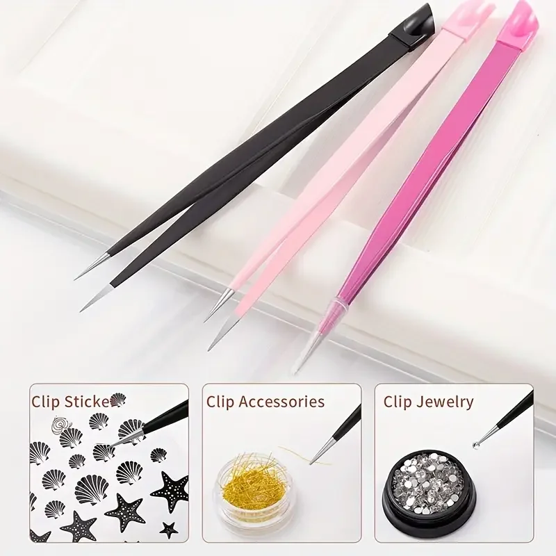 1 stücke Edelstahl Gebogene Gerade Schwarz Pinzette Nail art Strass Edelsteine Nipper Picking Werkzeuge Pailletten Perlen Nail art Werkzeuge *