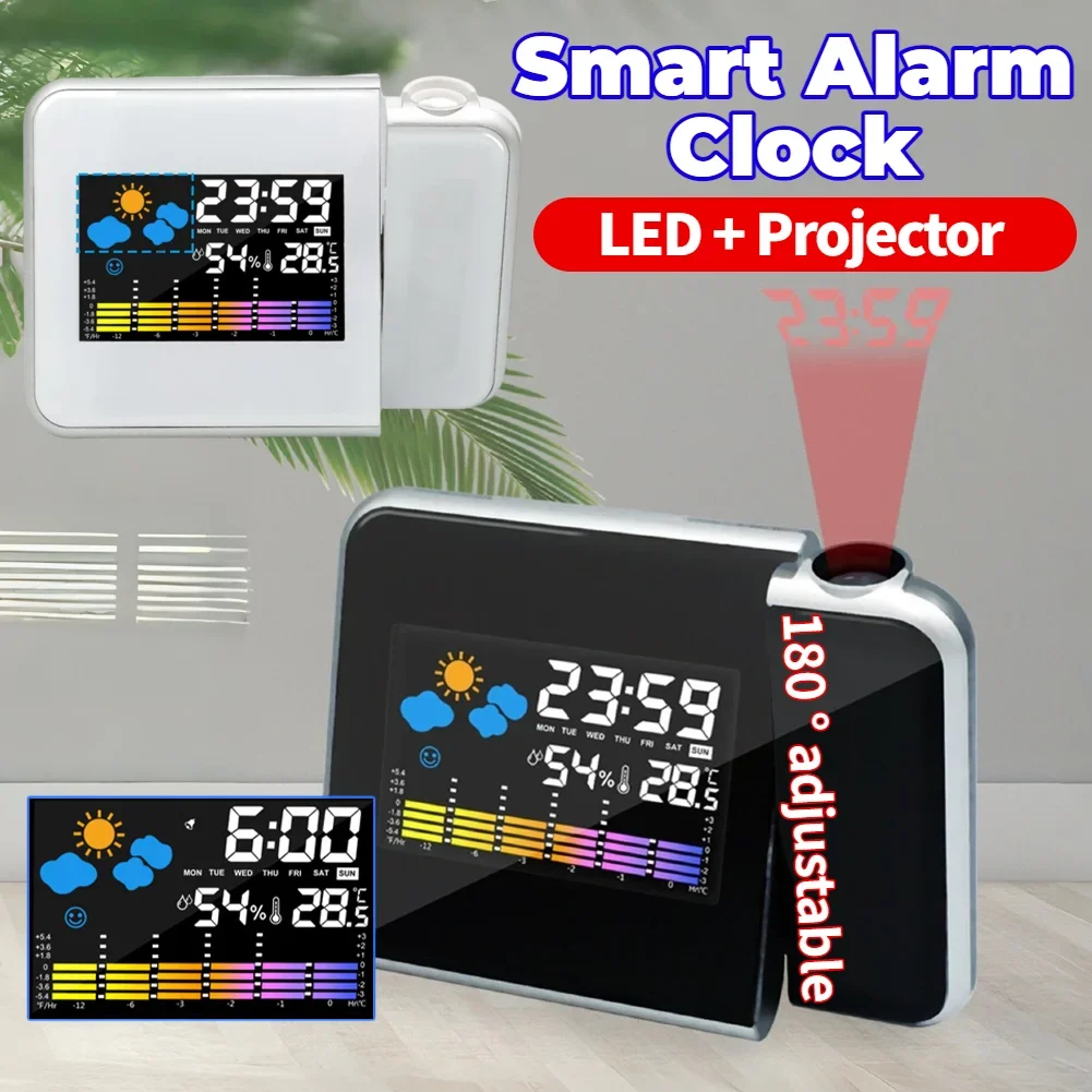 Projektionsuhr, digitaler LED-Projektor mit Nachthintergrundbeleuchtung für Zuhause, Wohnzimmer, Schlafzimmer, Schreibtisch, Tisch, Thermometer, Hygrometer