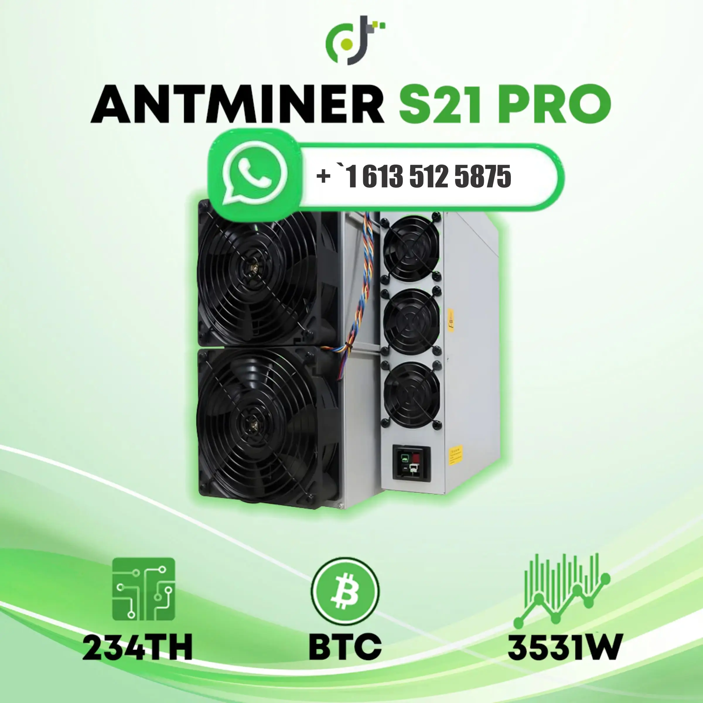JY Frenzy Deal! Kaufen Sie 5 und erhalten Sie 3 gratis. Bitmain Antminer S21 Pro 234T 3510W Bitcoin BTC ASIC Miner mit Netzteil, auf Lager verfügbar.