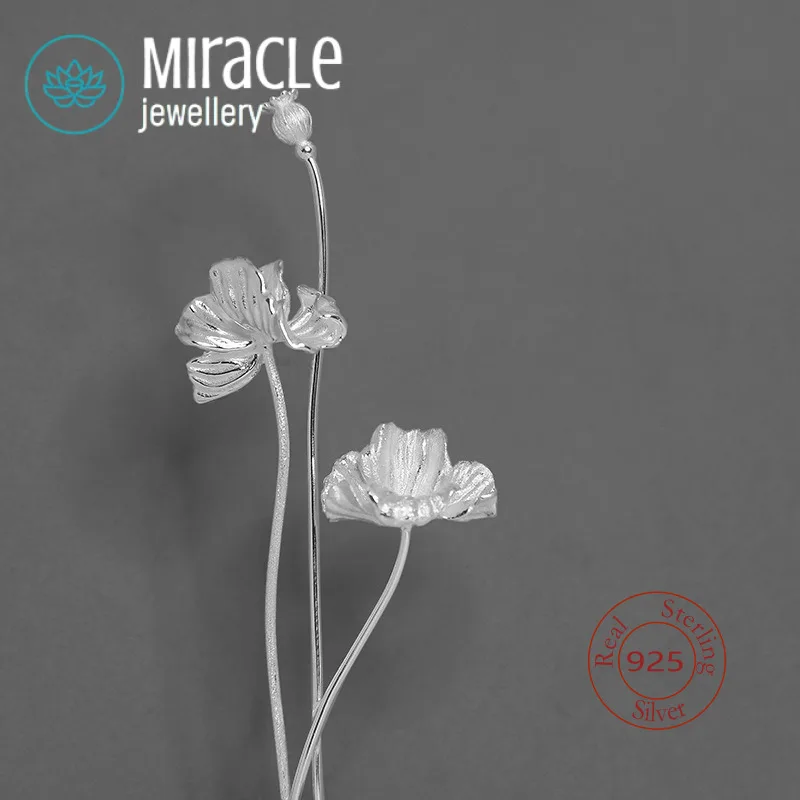 Wunder-Sterlingsilber 925, originelles Design, schöne Mohnblume, Nasturtium, künstlerischer Stil, dreidimensionale Nischenbrosche