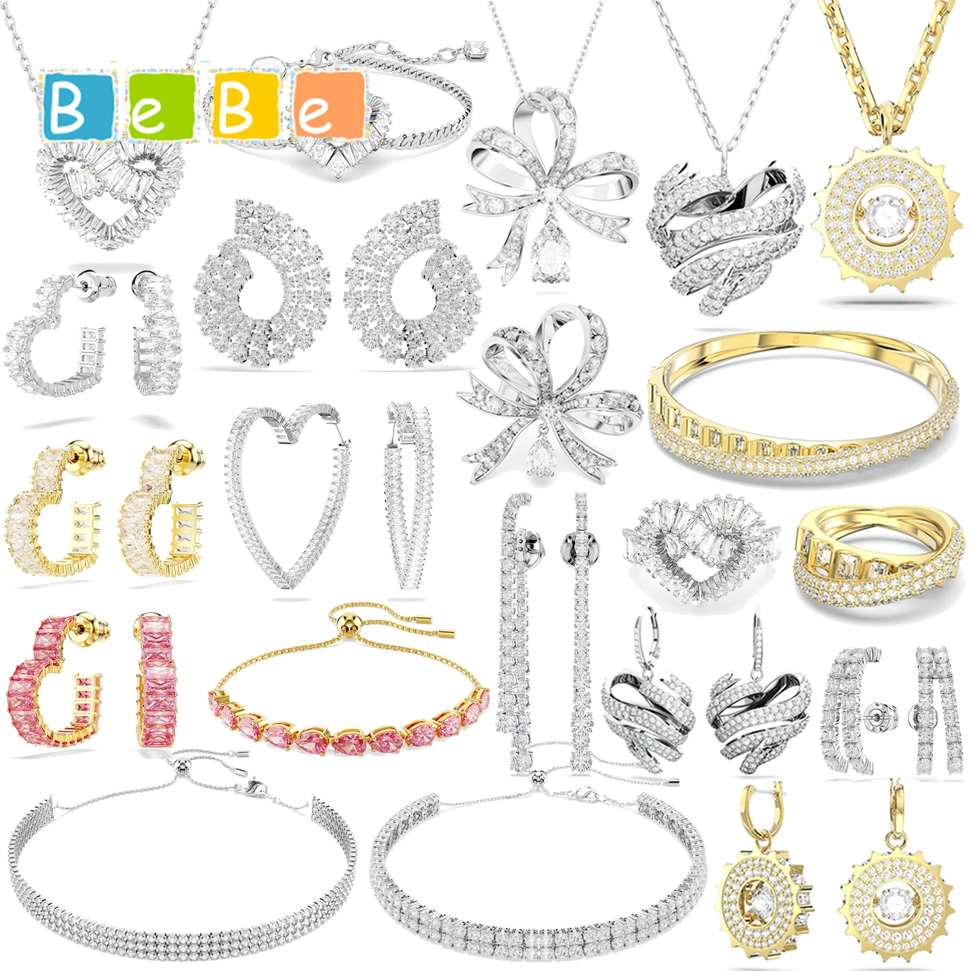 2026 925 Silber glänzender Diamant, blauer Edelstein, goldene Ohrstecker, Blumen-Herz-Ringe, Schleife, Armband, Halskette für Frau, edles Schmuckset