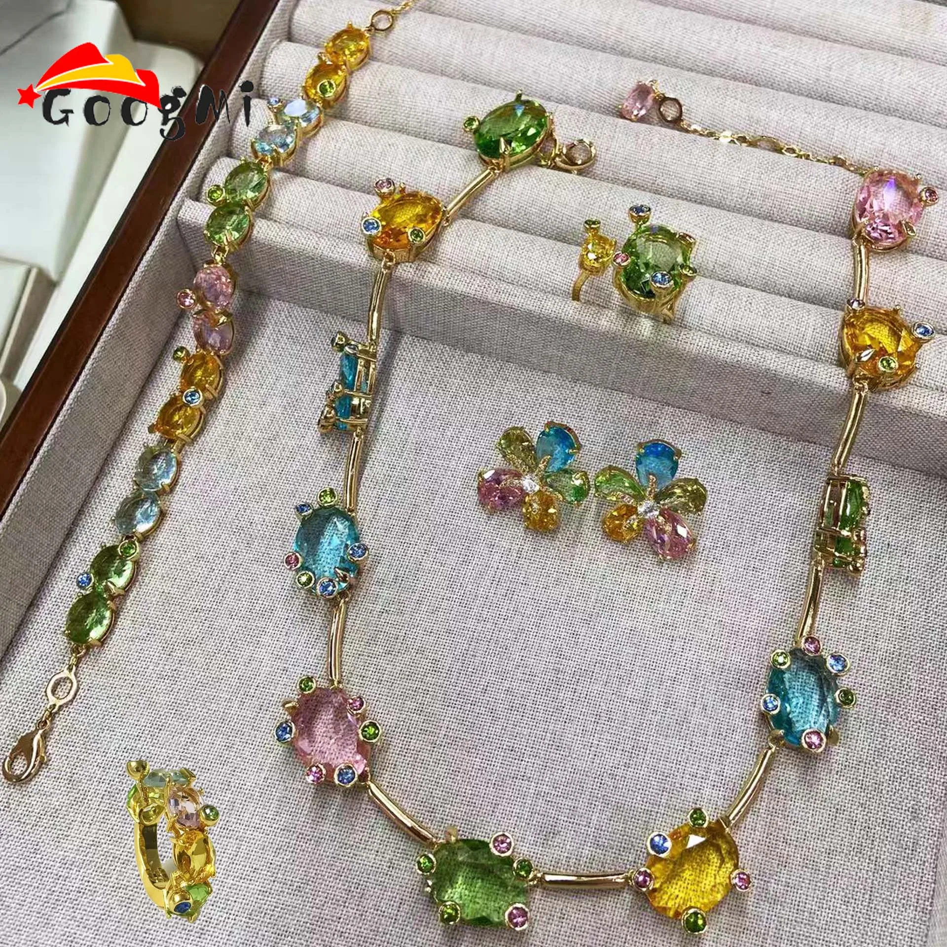 2026 Neuer Trend Buntes Candy-Schmuckset Halskette Ohrringe Armband Ring Luxusmarke Feiner Schmuck für Frauen Romantisches Geschenk