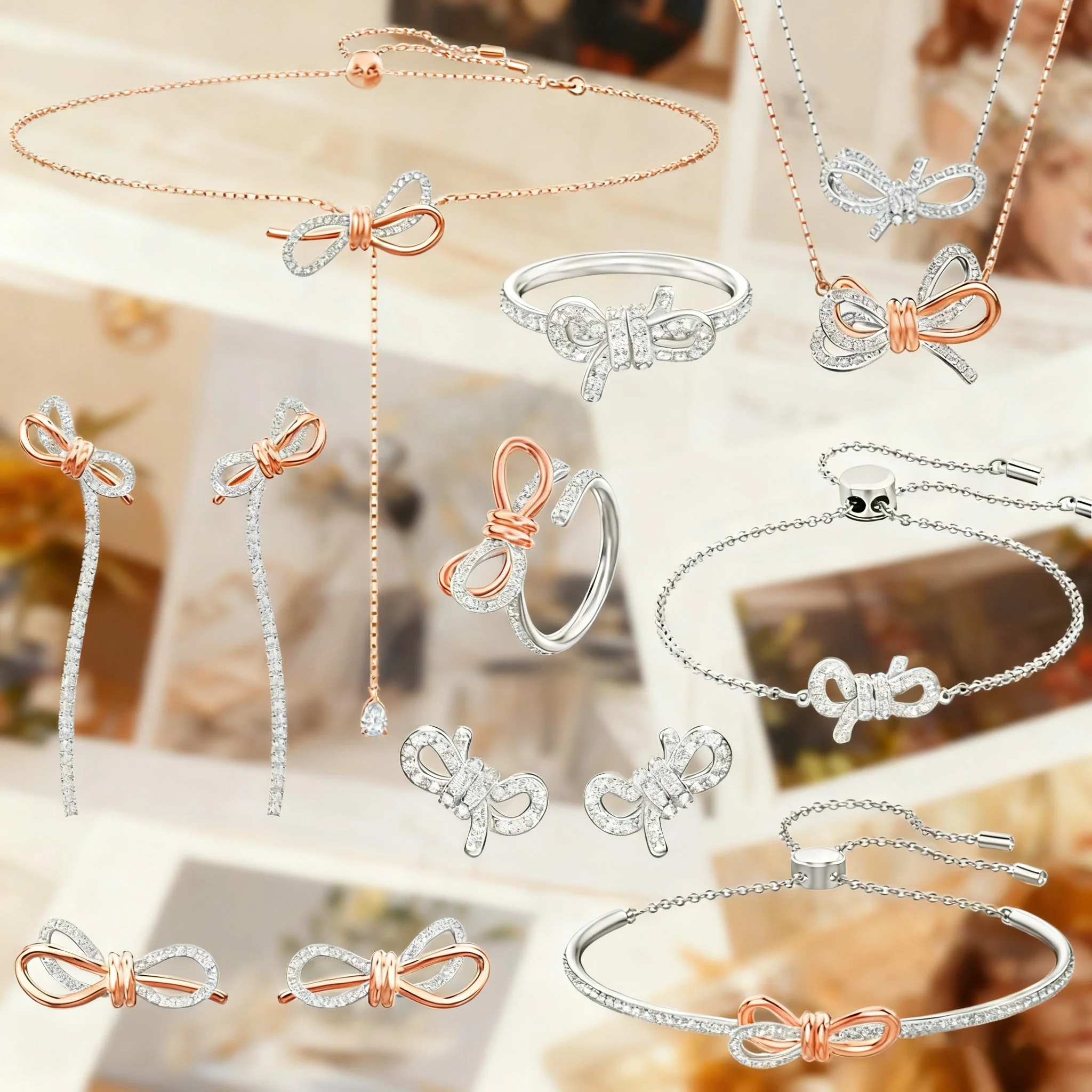 Original 2025 Prinzessinnen-Schleife Anhänger Halskette Ohrringe Armband Ring Mode für Damen Edles Schmuckset Romantisches Geschenk