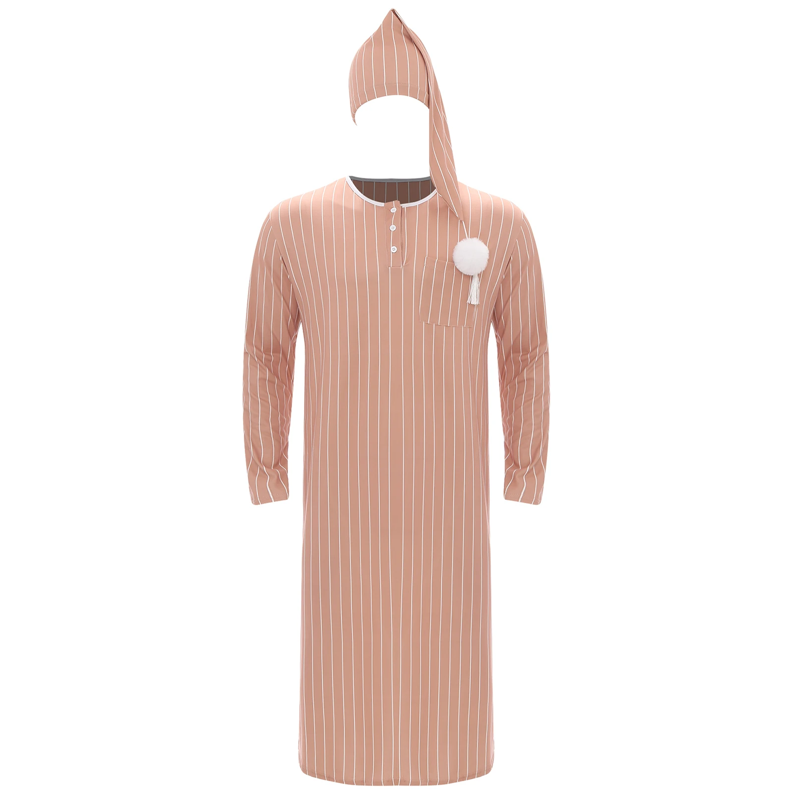 Herren-Nachthemd im Vintage-Stil, gerüscht, lange Ärmel, Kordelzug am Ärmelbund, weicher, lockerer Schlafmantel mit Schlafmütze, Pyjama-Set, Sissy-Homewear