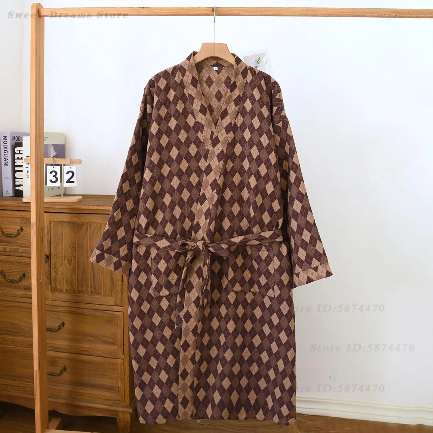 2-teiliges Herren-Nachthemd für Herbst und Winter, langärmelig, einteilig, knielang, Bademantel, langes Nachthemd, integrierter Schlafanzug aus Wolle und Seide