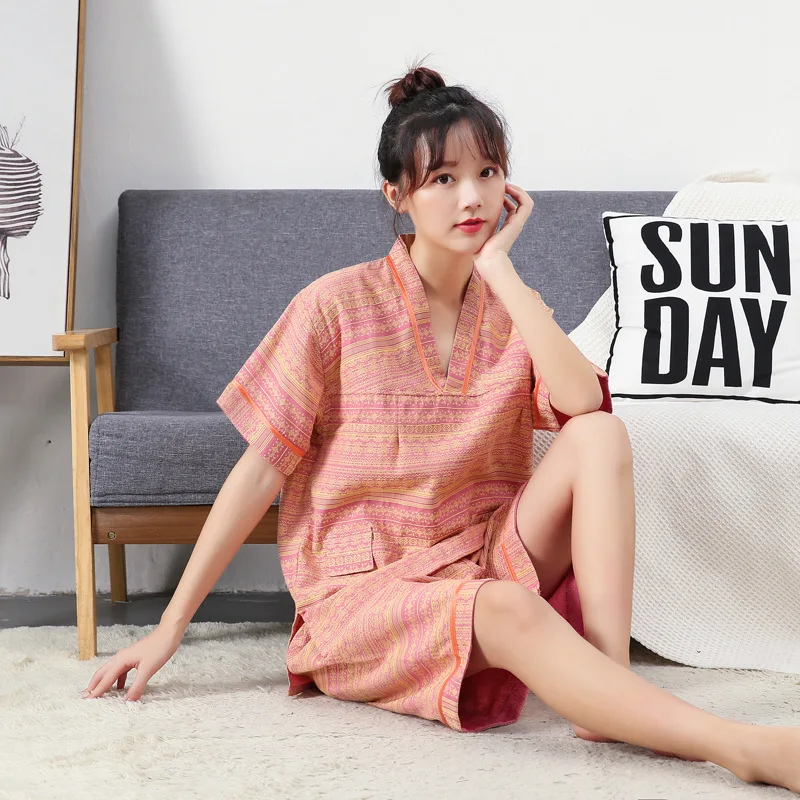 Lin Cotton ort Sve Spwear ex Sommer Batobe Paar Große Größe Set Gast Massage Robe Gestreiften Einfache Hause Sle