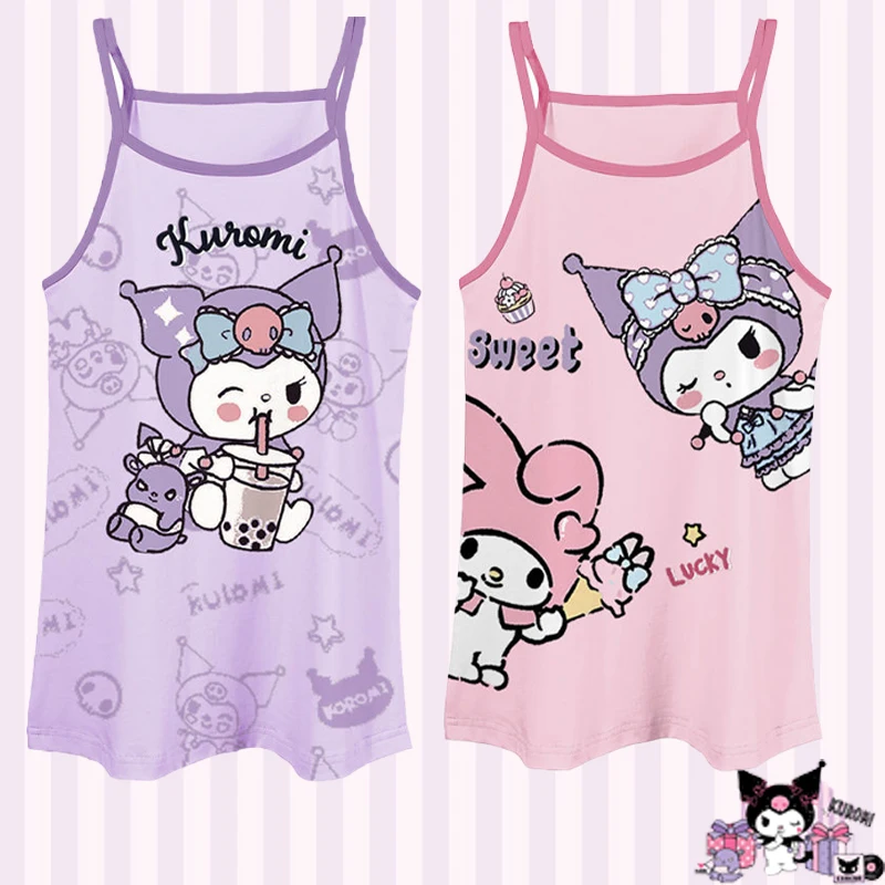 Hello Kitty Pyjamas Sanrio Girl Primary Kuromi Schule Schüler Kinder Mädchen Sommerpyjamas Sling-Rock Baumwolle Süßes Festival-Geschenk