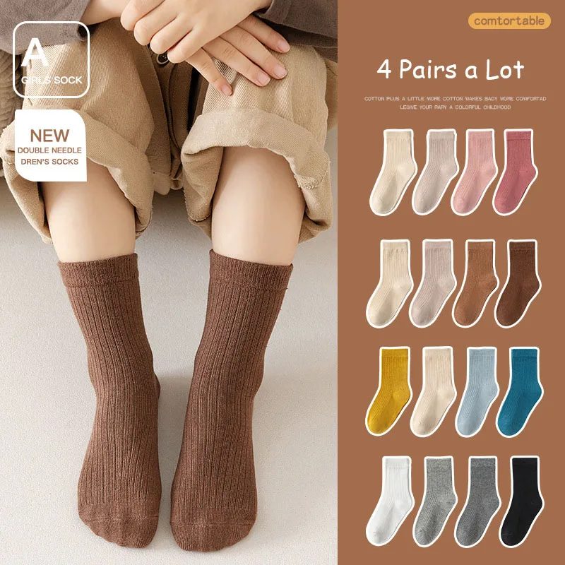 4 Paar viele Frühlings-Kniestrümpfe für Kinder, niedliche einfarbige Mädchensocken, 12 Farben, vielseitige Kinder-In-Röhrensocken