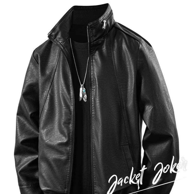 Neue Mode Männer Slim Fit Motorrad Leder Jacken Mann Stehkragen Punk Casual PU Leder Mäntel Qualität Männlichen Dünne Jacken 5XL