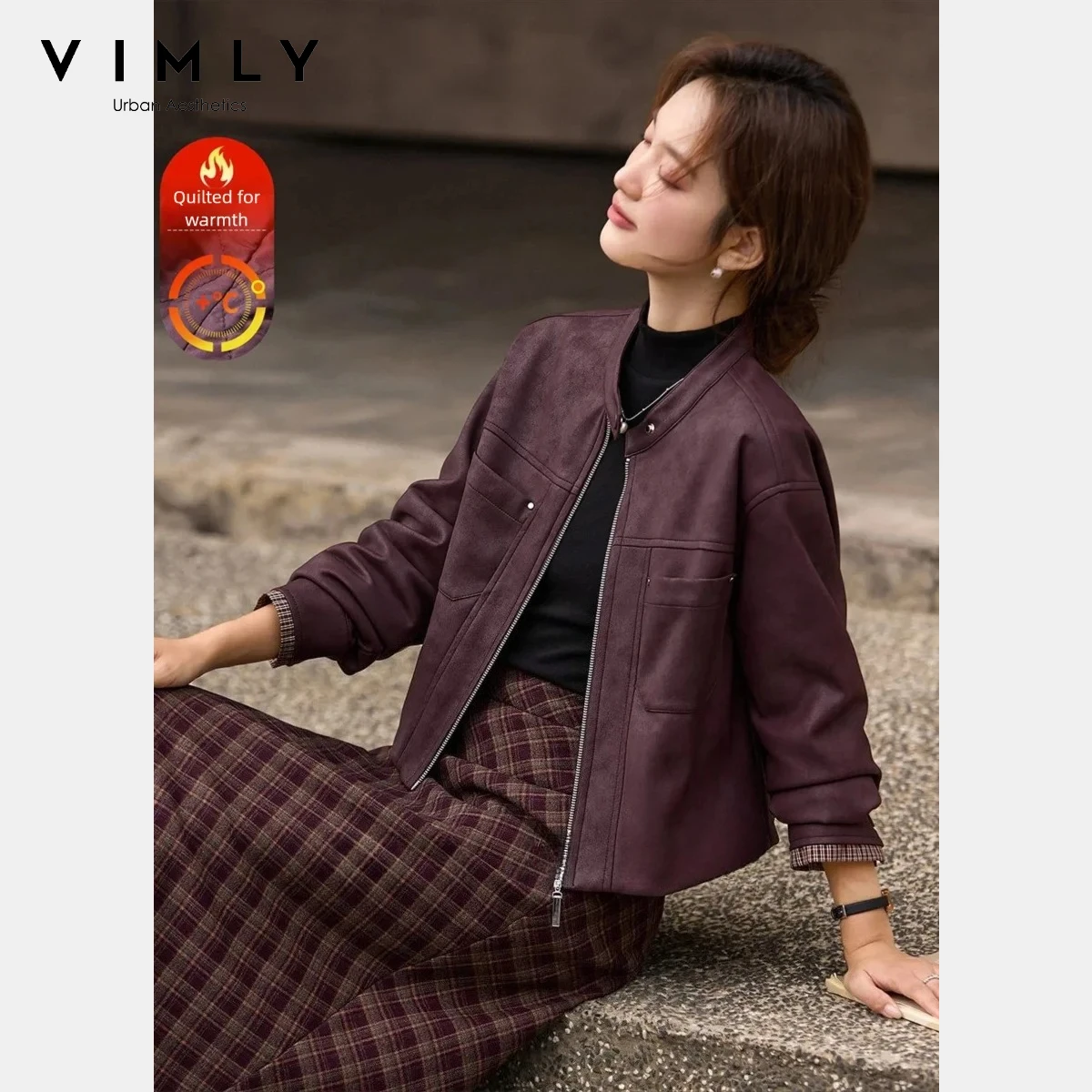 Sweet Ele Faionable Kunstleder Long Sve Stehkragen Jaet Damen Ort Oberbekleidung Reißverschluss Herbst Neuankömmling
