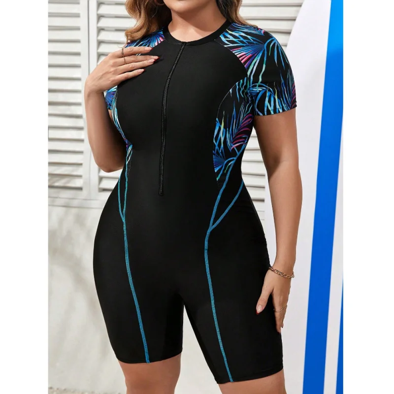 Übergröße Badeanzug Neuer Badeanzug Einteiliger Hochkragen-Reißverschluss Kurzärmeliger Damen-Surfanzug Plus Size Schwimmanzug
